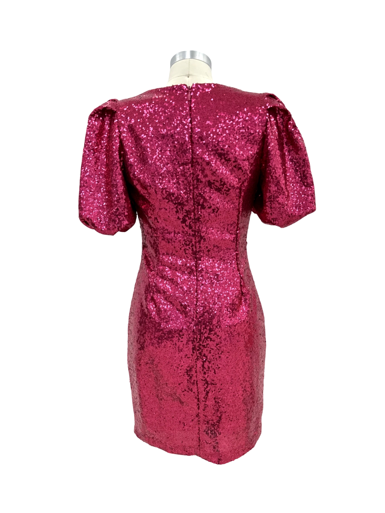 This stunning New York & Company bodycon dress is perfect for your next cocktail party or special occasion. Crafted from shimmering pink sequins, this dress offers a flattering, form-fitting silhouette. It features a round neckline and short, puffed sleeves for a touch of drama. Made with a blend of polyester and spandex, this dress offers a comfortable fit. This pre-owned dress is in excellent condition and ready to make a statement.