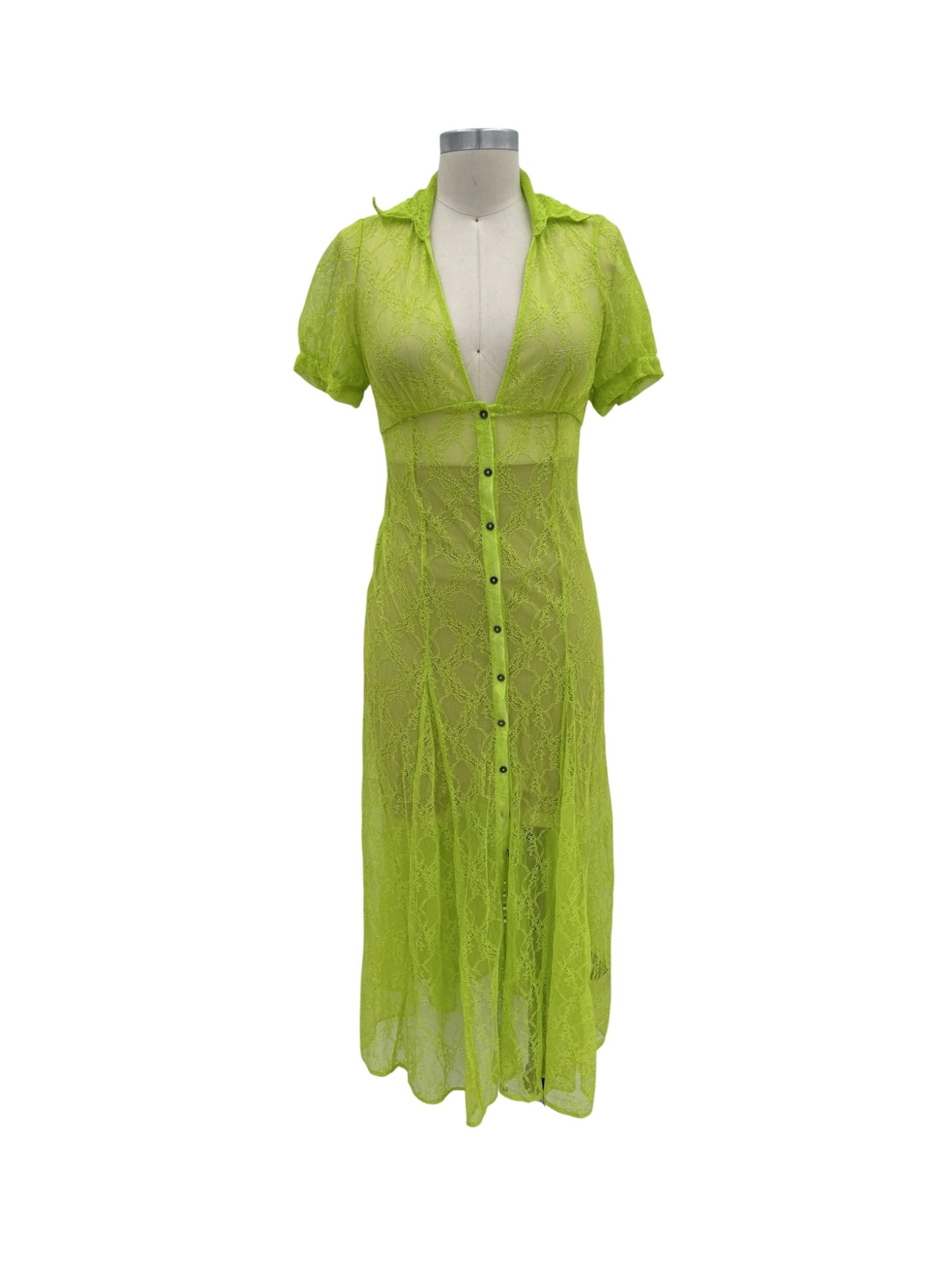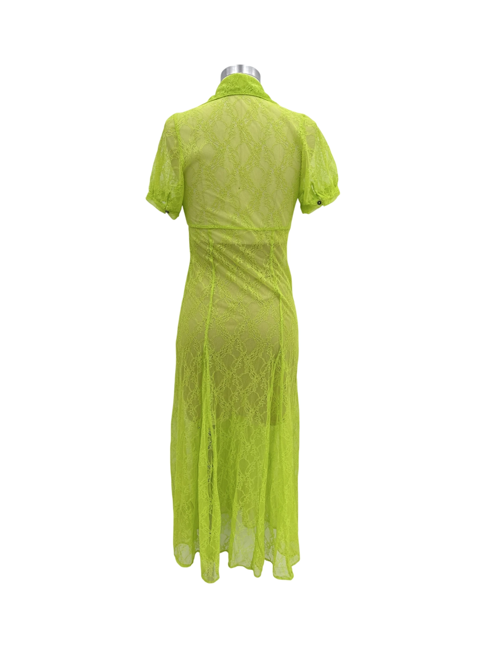 This stunning neon green dress from Urban Outfitters is perfect for the summer season. Made of lightweight nylon and elastane, this A-line midi dress features a classic collar and short sleeves. Ideal for a casual outing, this dress is sure to make a statement. Its vibrant color and unique design will make you stand out from the crowd.