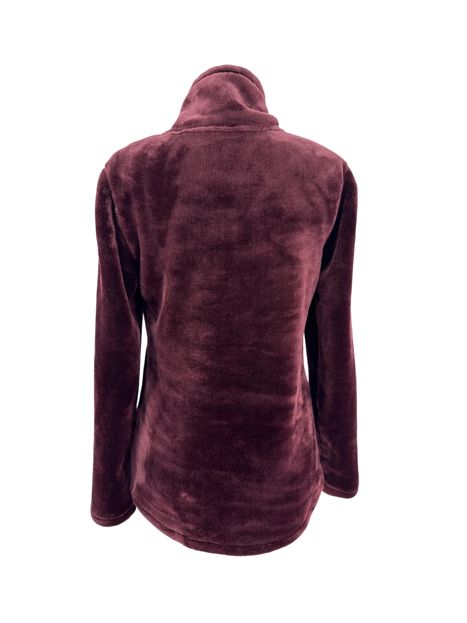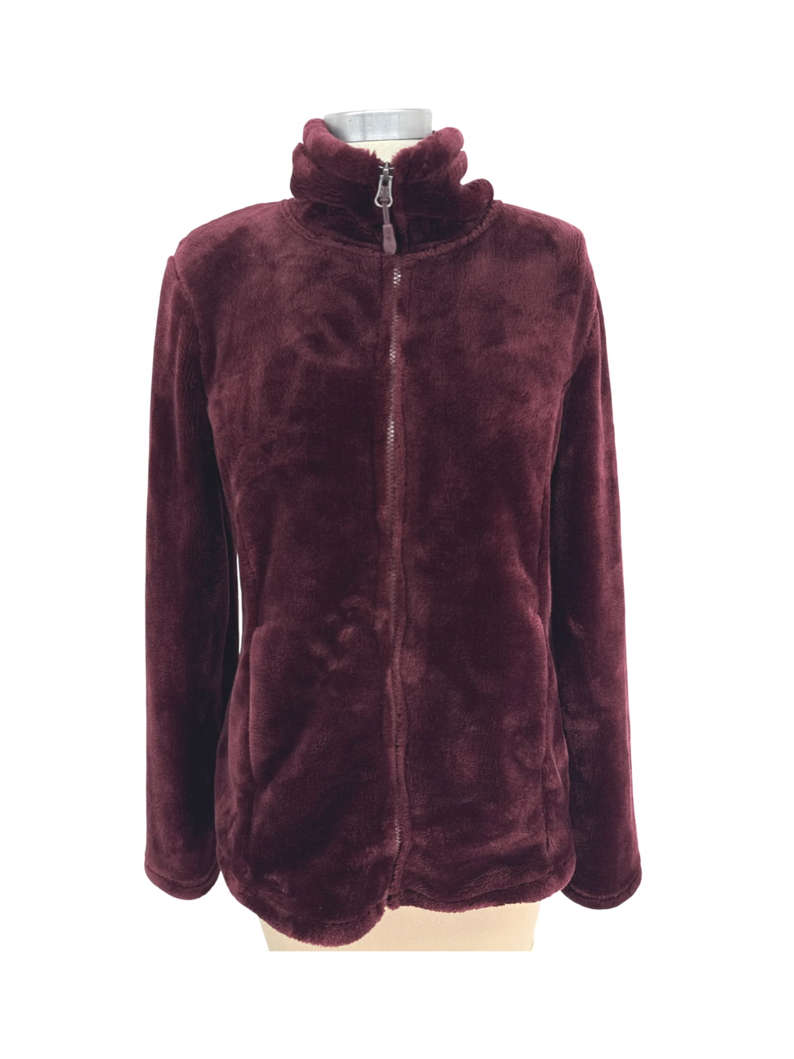 Stay warm and cozy in this pre-owned 32° HEAT jacket. This plush jacket features a rich burgundy color and a soft faux fur material, perfect for chilly weather. Designed for comfort and style, it's ideal for layering or wearing as a standalone piece. A great addition to your wardrobe for a stylish and practical winter look. Made with quality materials, this jacket is a fantastic find.