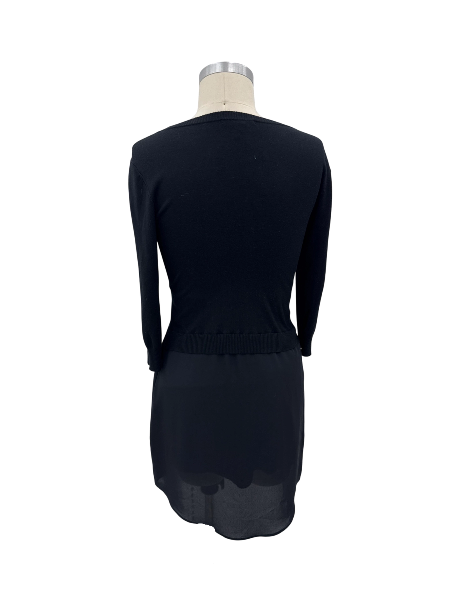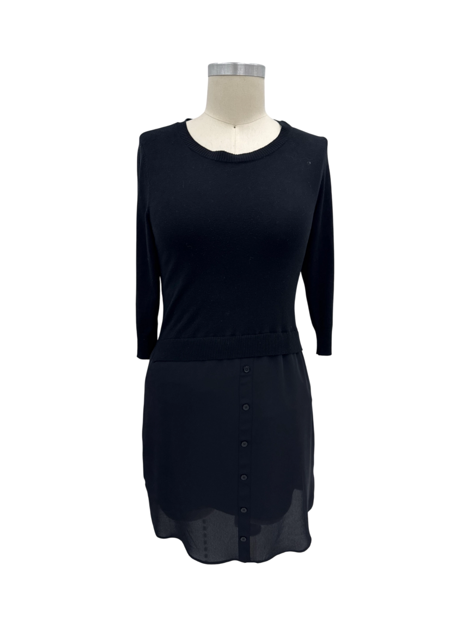 This elegant pre-owned 41 HAWTHORN dress is a perfect addition to any wardrobe. Featuring a classic black color, it's suitable for various occasions. Crafted from a blend of rayon, nylon, spandex, and polyester, the dress combines comfort and style. The shift silhouette and mini skirt length offer a flattering fit. Ideal for fall and winter wear, it's a versatile piece that can be dressed up or down. Get ready to turn heads with this stylish and timeless dress.