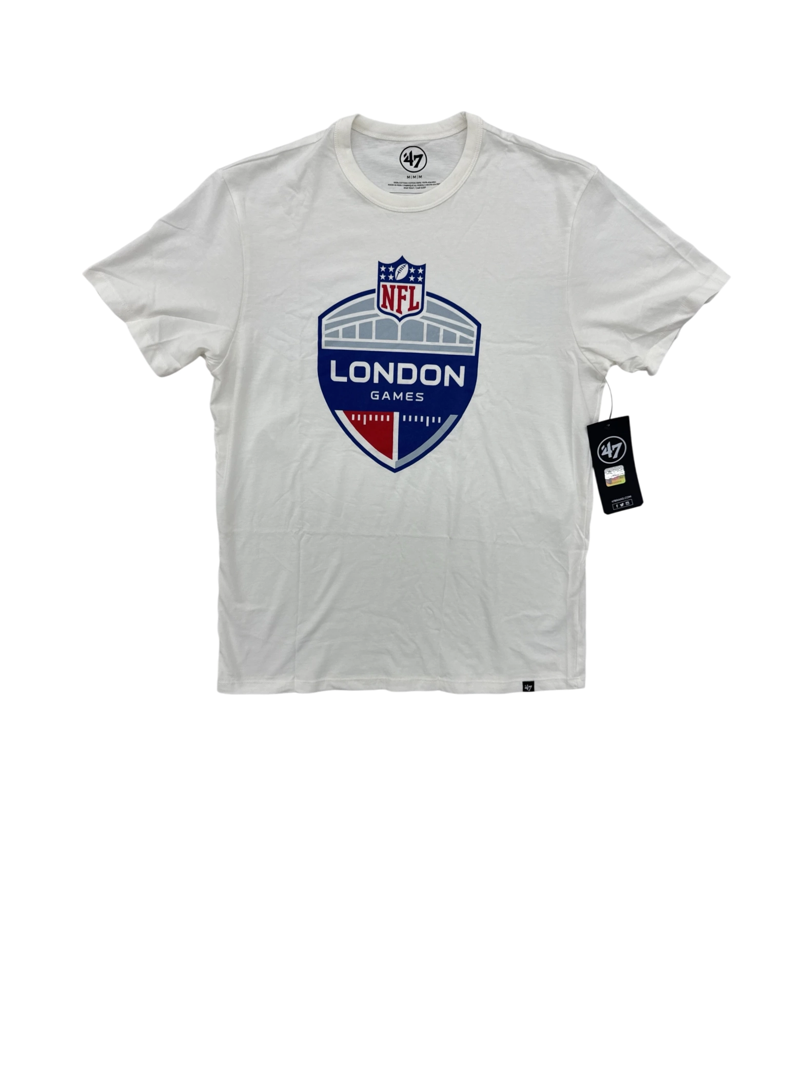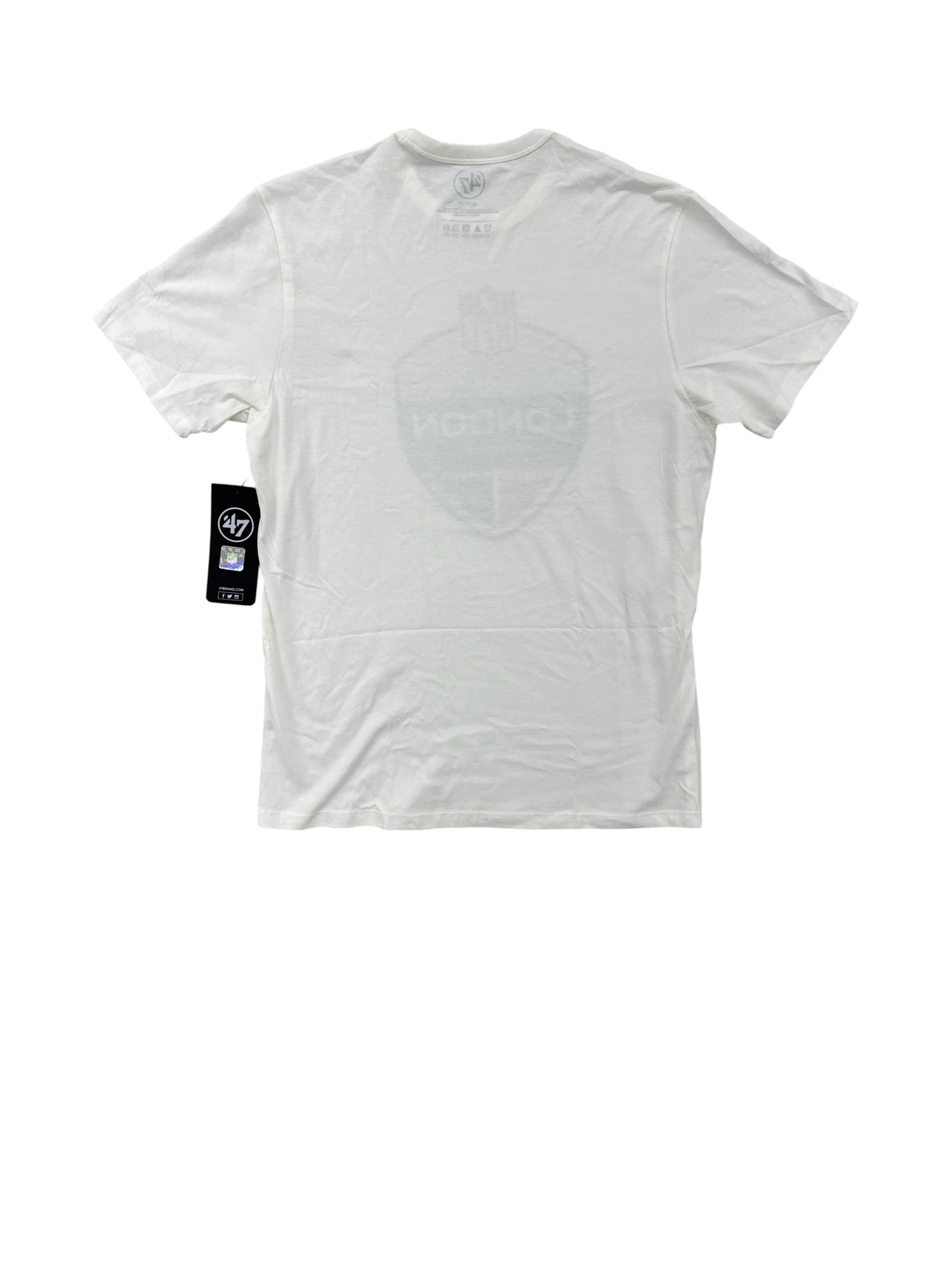 Get ready for the next big game with this pre-owned '47 NFL London Games T-shirt. Made from 100% cotton, this white tee features a bold, eye-catching graphic of the London Games logo, showcasing your love for American Football. Perfect for game day or casual wear, this comfortable and stylish shirt is a must-have for any NFL fan. Show off your team spirit with this unique piece.