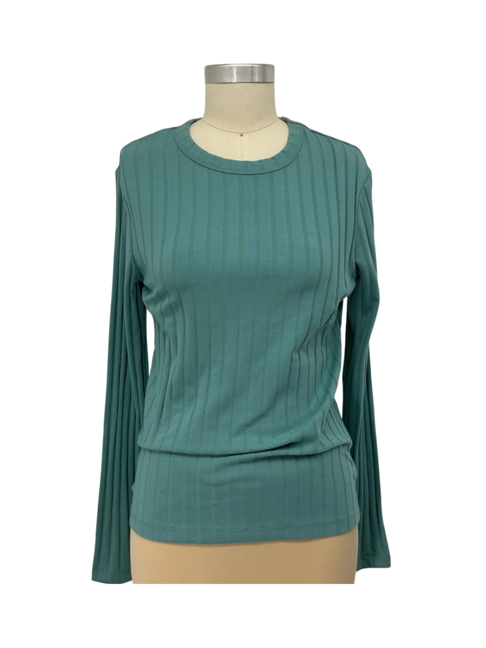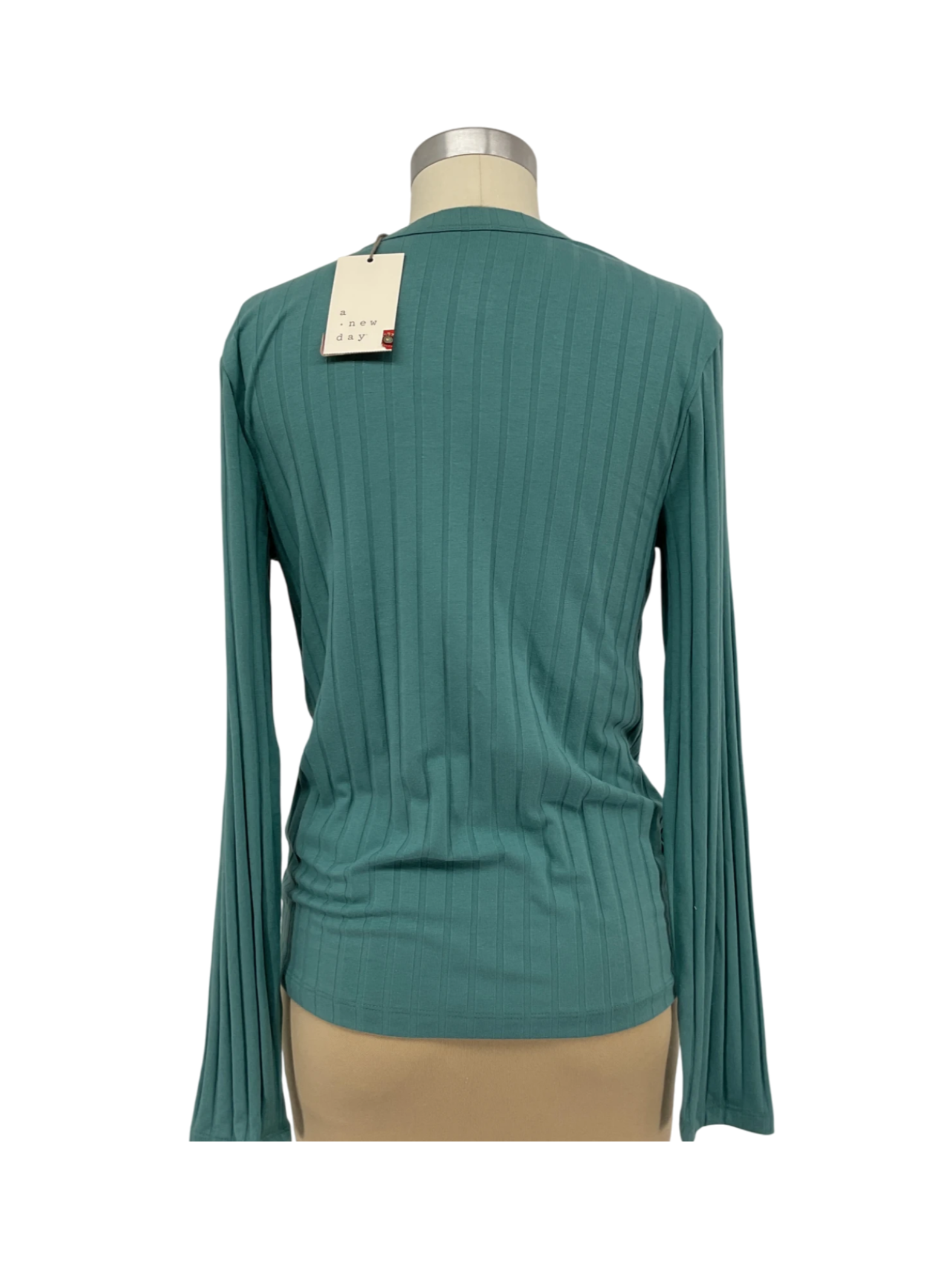 Women's New Day Women's Long Sleeve Round Neck Slim Fit Wide Rib T-Shirt in size small.
