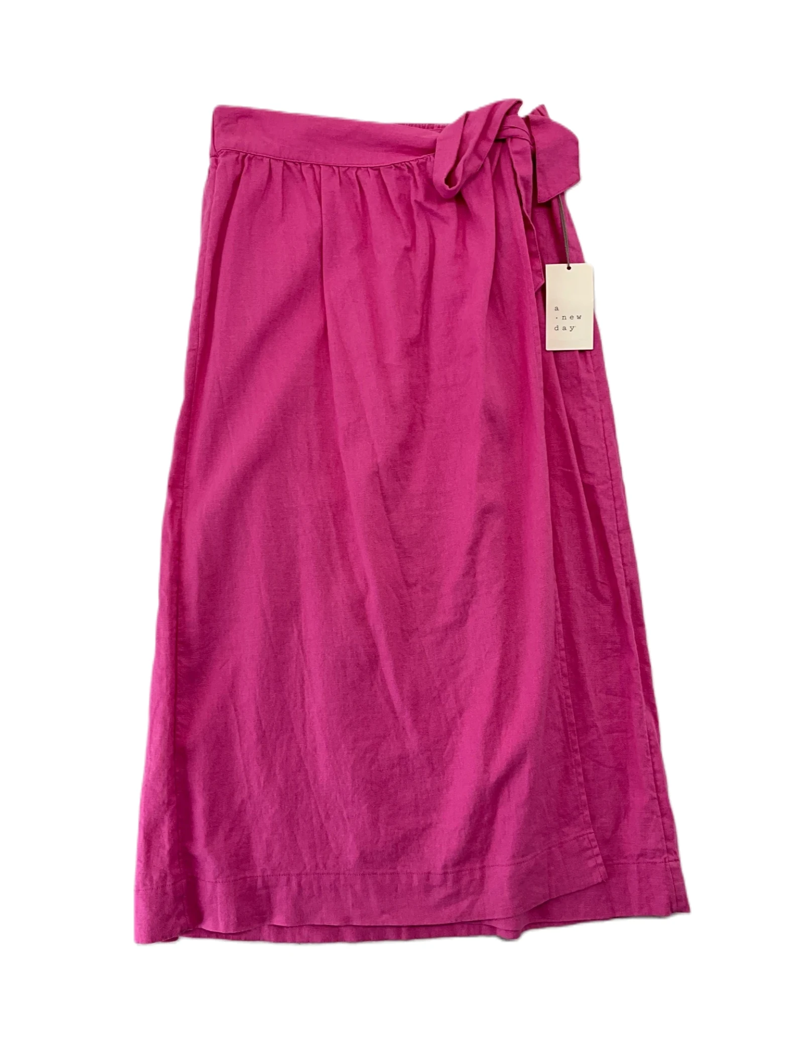A new women's pink linen wrap midi skirt in small size.