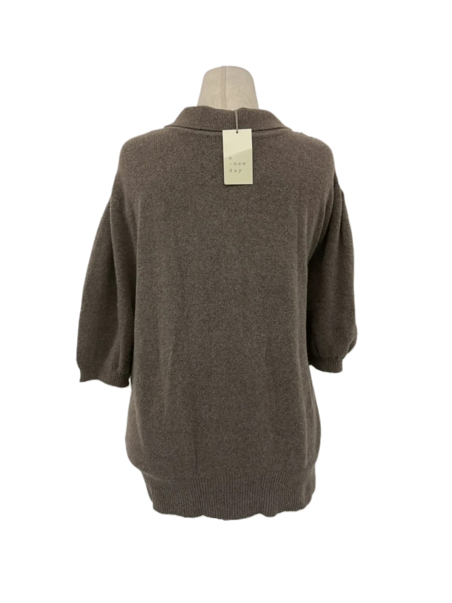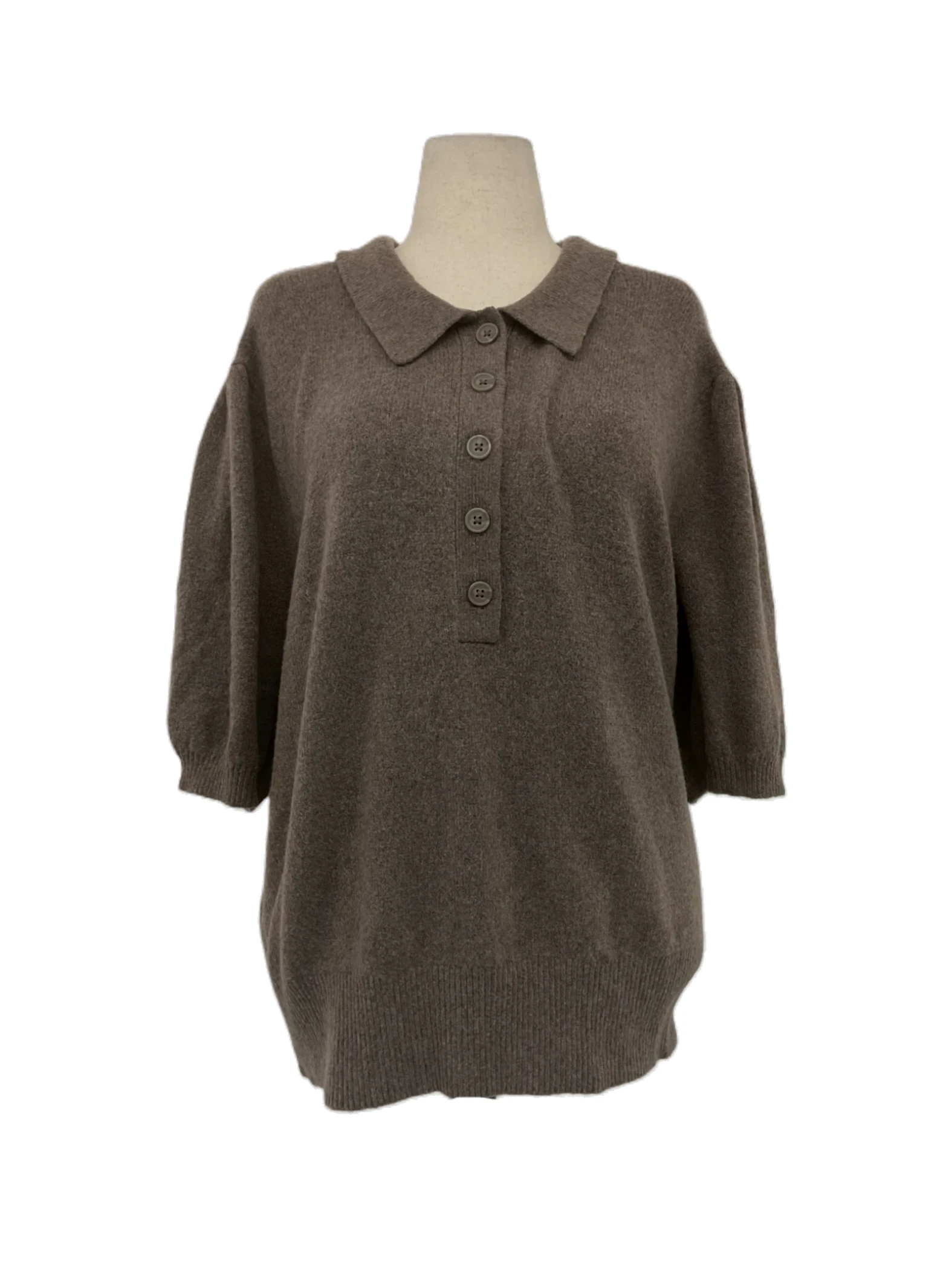 Women's short puff sleeve polo sweater in brown, size 4X (26-28)