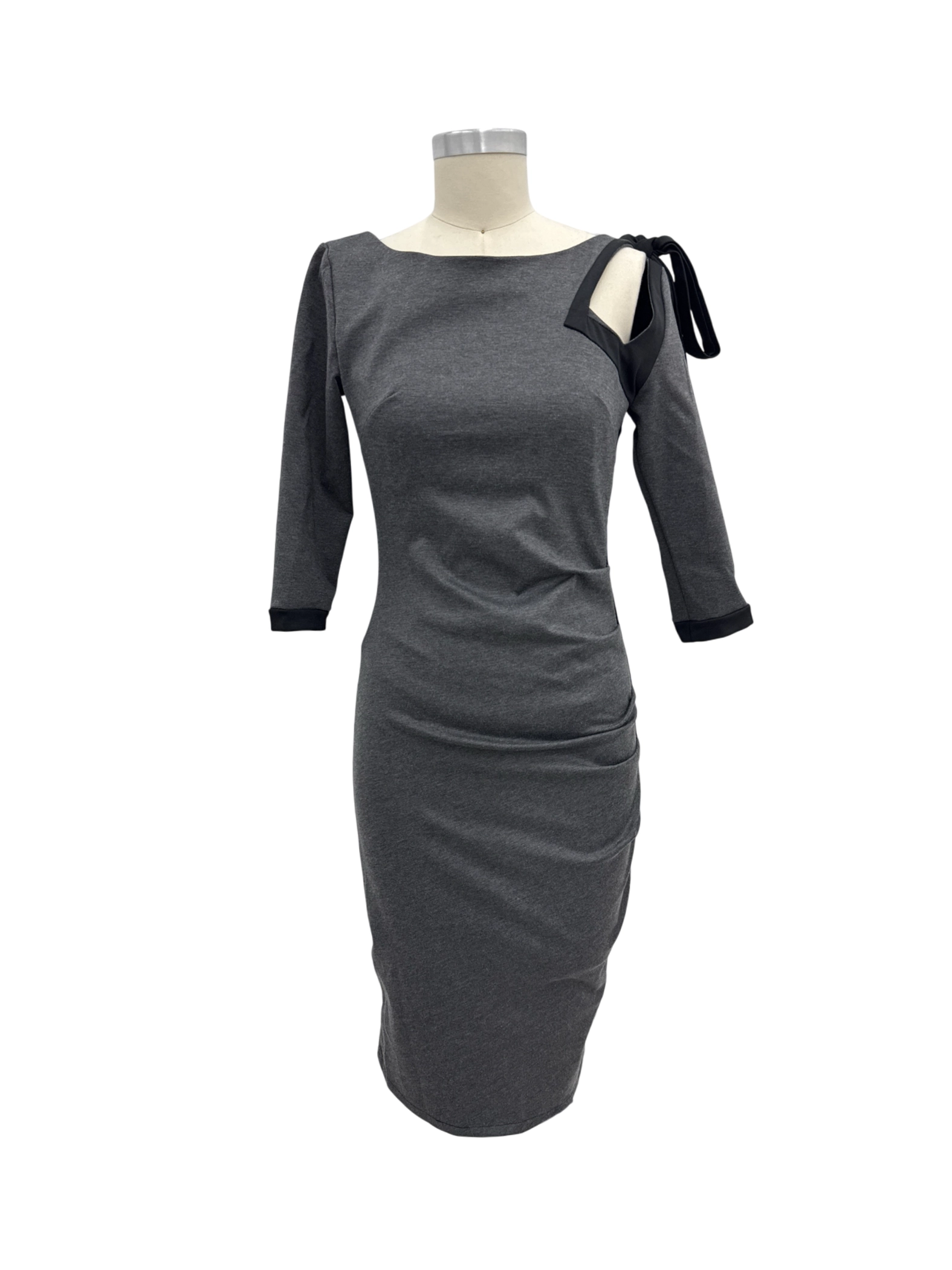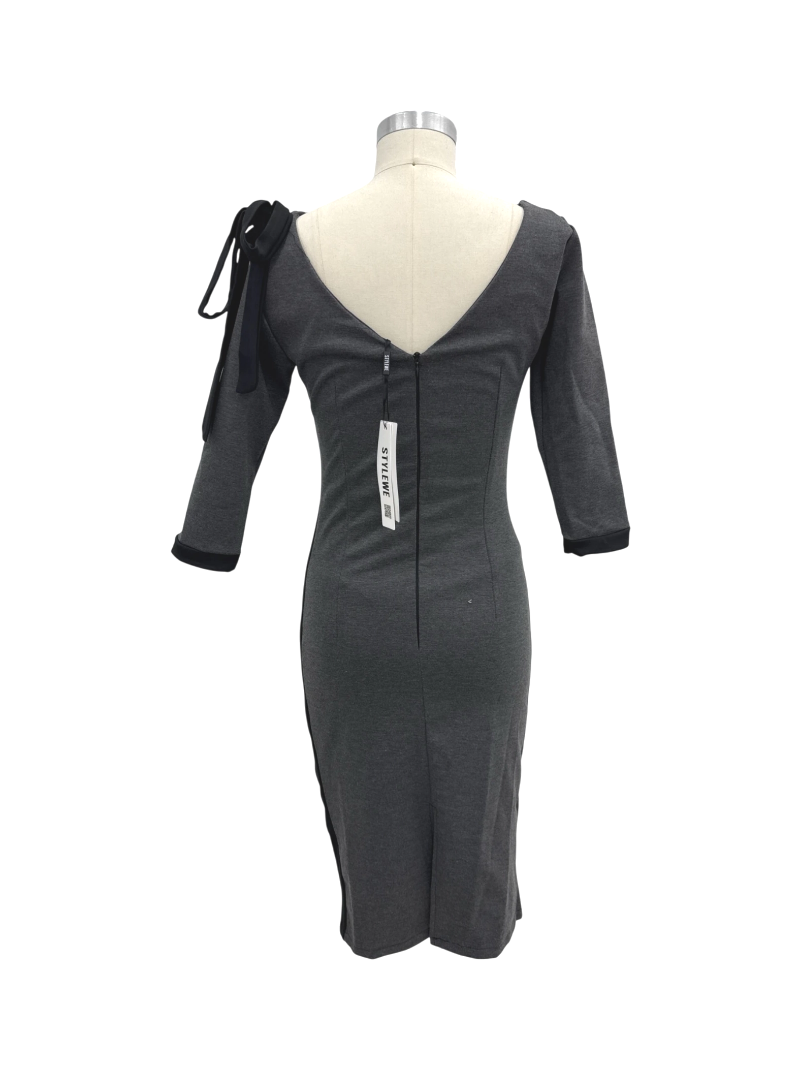 Elevate your wardrobe with this stylish second-hand dress by ABC XINGGANWU. This bodycon dress features a flattering silhouette with an asymmetrical neckline and cutout detail on the shoulder, perfect for creating a chic and modern look. The gray color and black accents make it versatile for various occasions. Crafted from a blend of polyester and spandex, this dress offers both comfort and a flattering fit. A perfect piece for a sophisticated and stylish look.