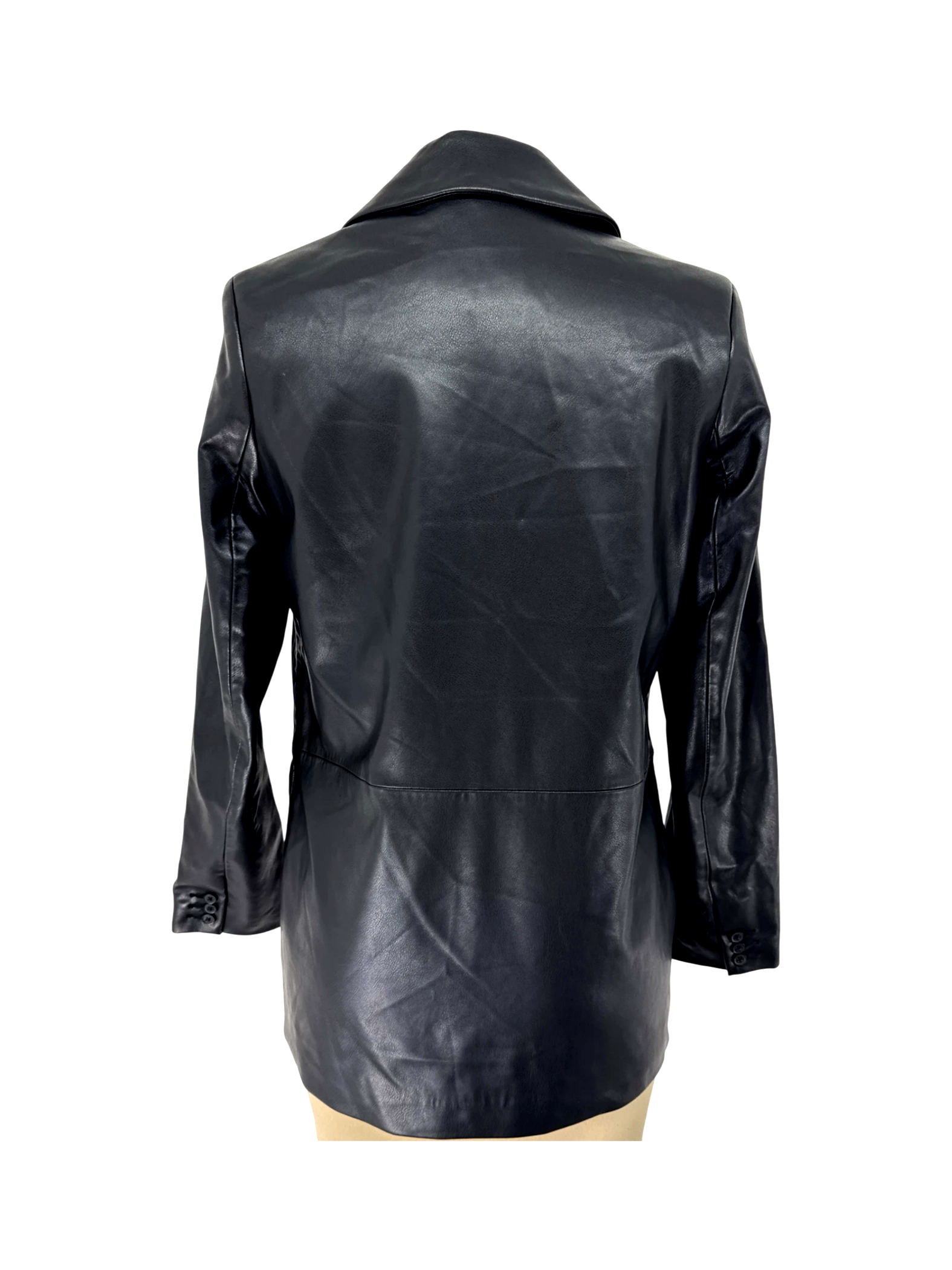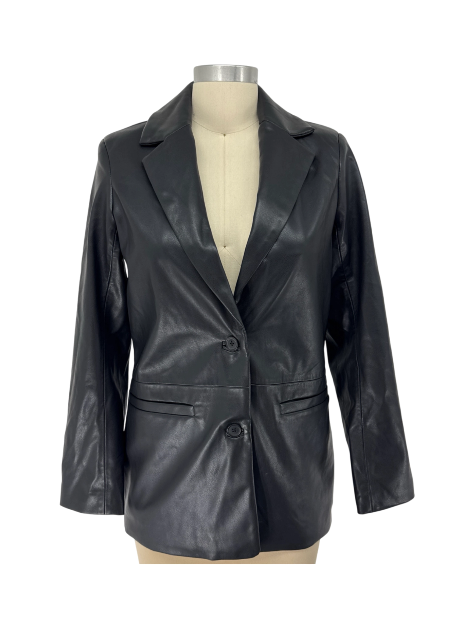 This Abercrombie & Fitch blazer is a stylish addition to any wardrobe. Crafted from sleek faux leather in a classic black color, this blazer exudes sophistication. Perfect for layering, it elevates any outfit, from casual jeans to a polished dress. The tailored design and impeccable quality make it a versatile piece for both work and social occasions. This pre-owned blazer offers a great value for a timeless piece.