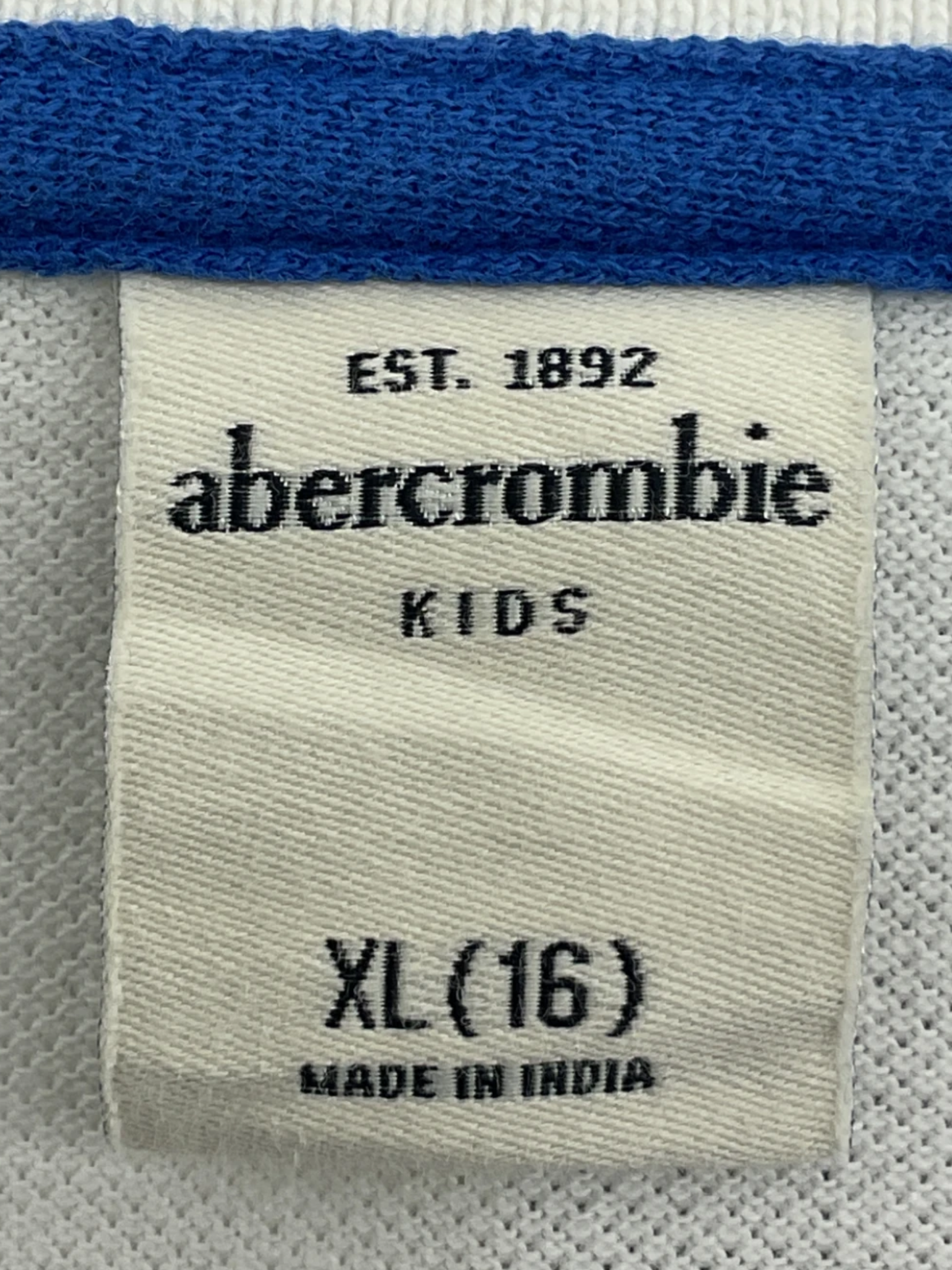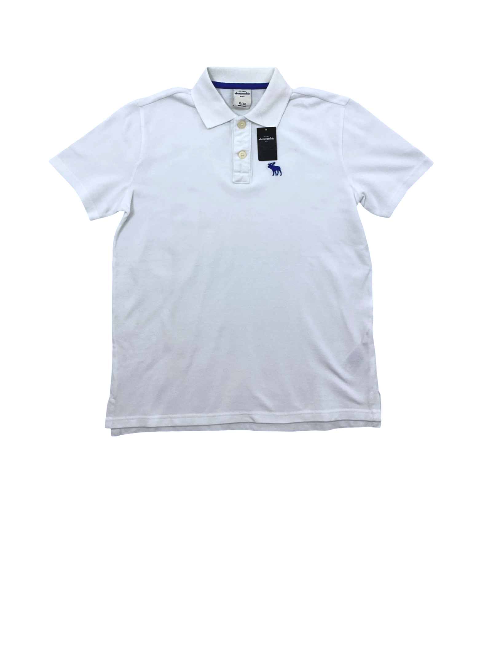 Polo shirt for boys size XL/16 in white short sleeve by Abercrombie Kids.