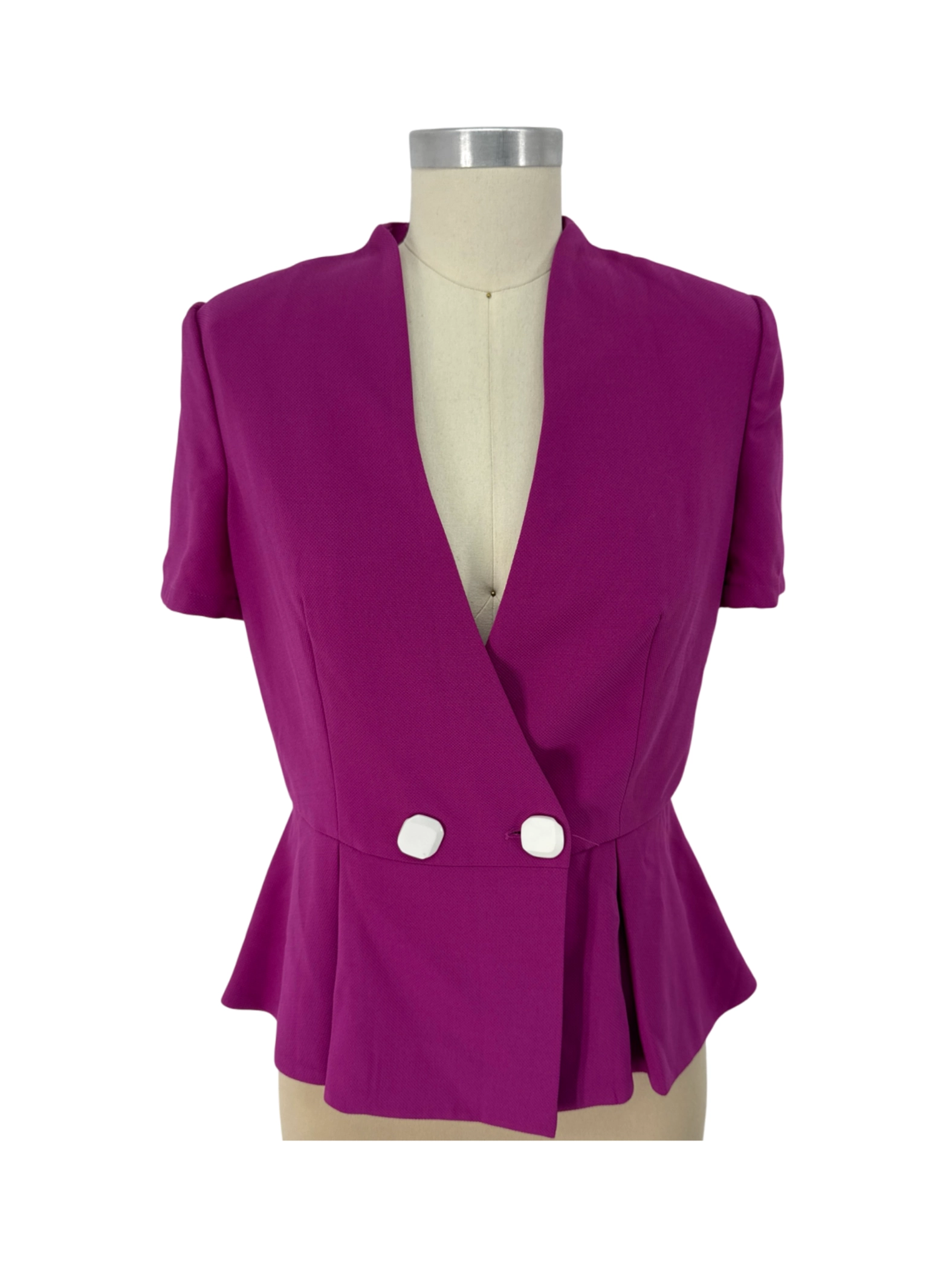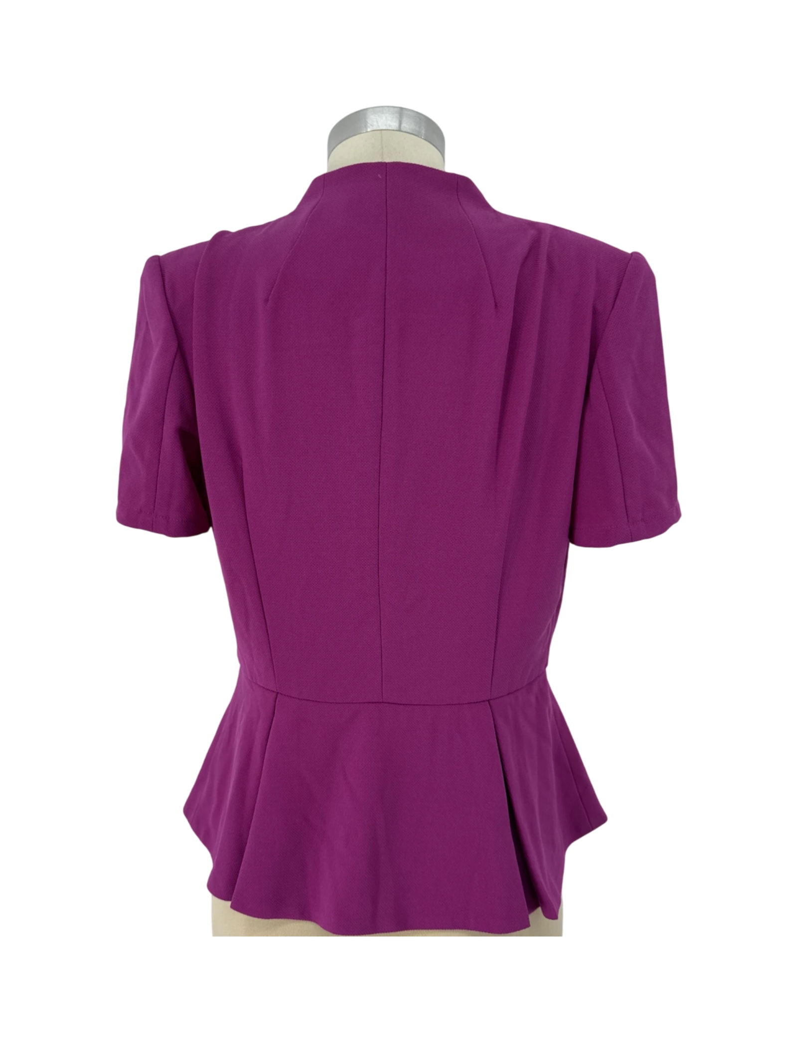 Elevate your wardrobe with this pre-owned AD blazer. Featuring a vibrant purple hue, short sleeves, and a flattering peplum waist, this jacket is perfect for adding a pop of color to any outfit. Made from 100% polyester, it offers both style and comfort. Whether you're heading to the office or a special event, this blazer is a versatile and chic addition to your collection. Pre-owned and ready for its next adventure.