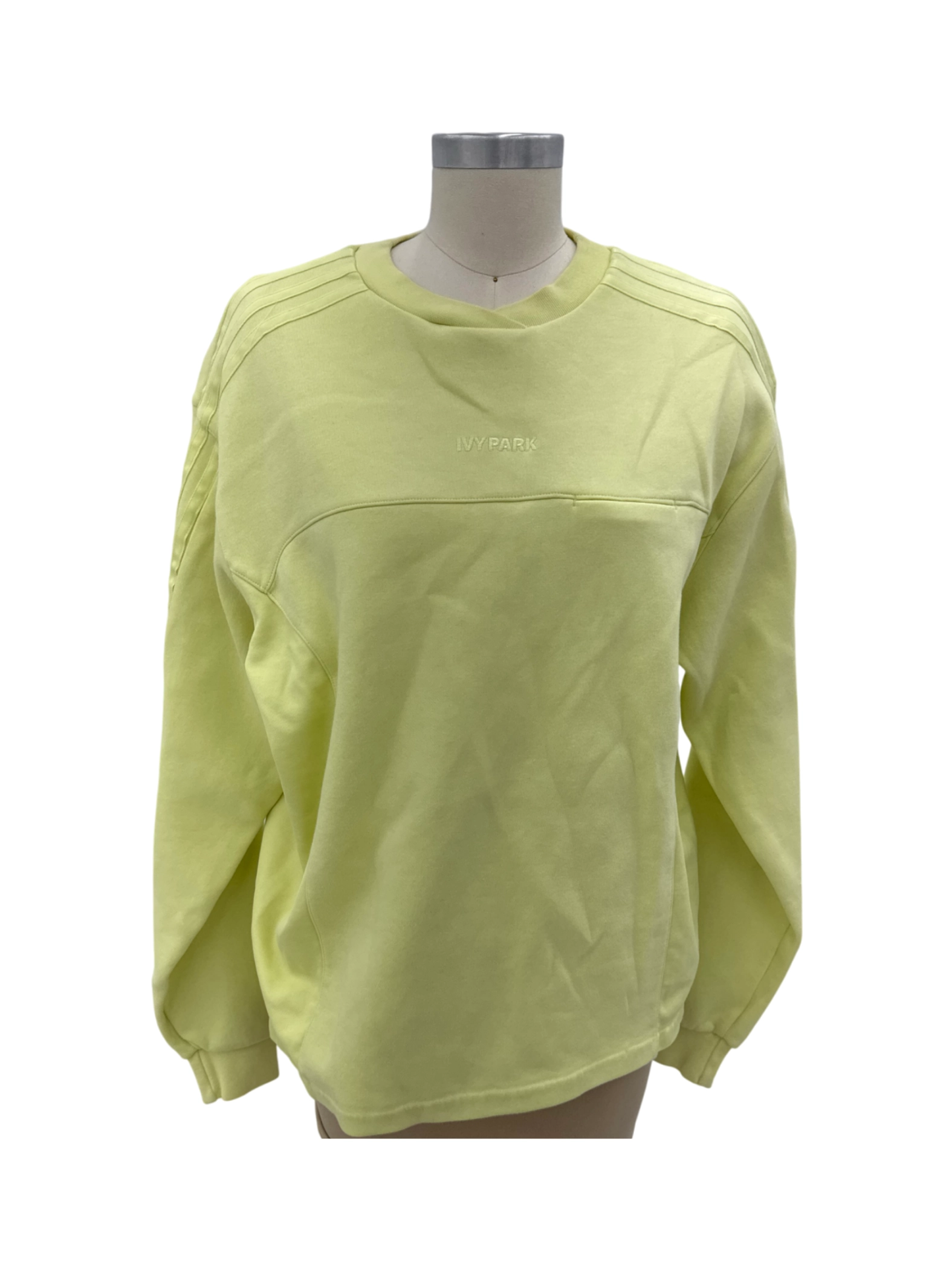 Elevate your casual wardrobe with this pre-owned Adidas Ivy Park sweater in a vibrant yellow hue. This stylish sweater features a classic crew neck and comfortable fit, perfect for everyday wear. Crafted from a soft blend of cotton and polyester, it offers both comfort and durability. Ideal for the fall season, this sweater is a versatile addition to any closet. This pre-loved sweater is a sustainable fashion choice.