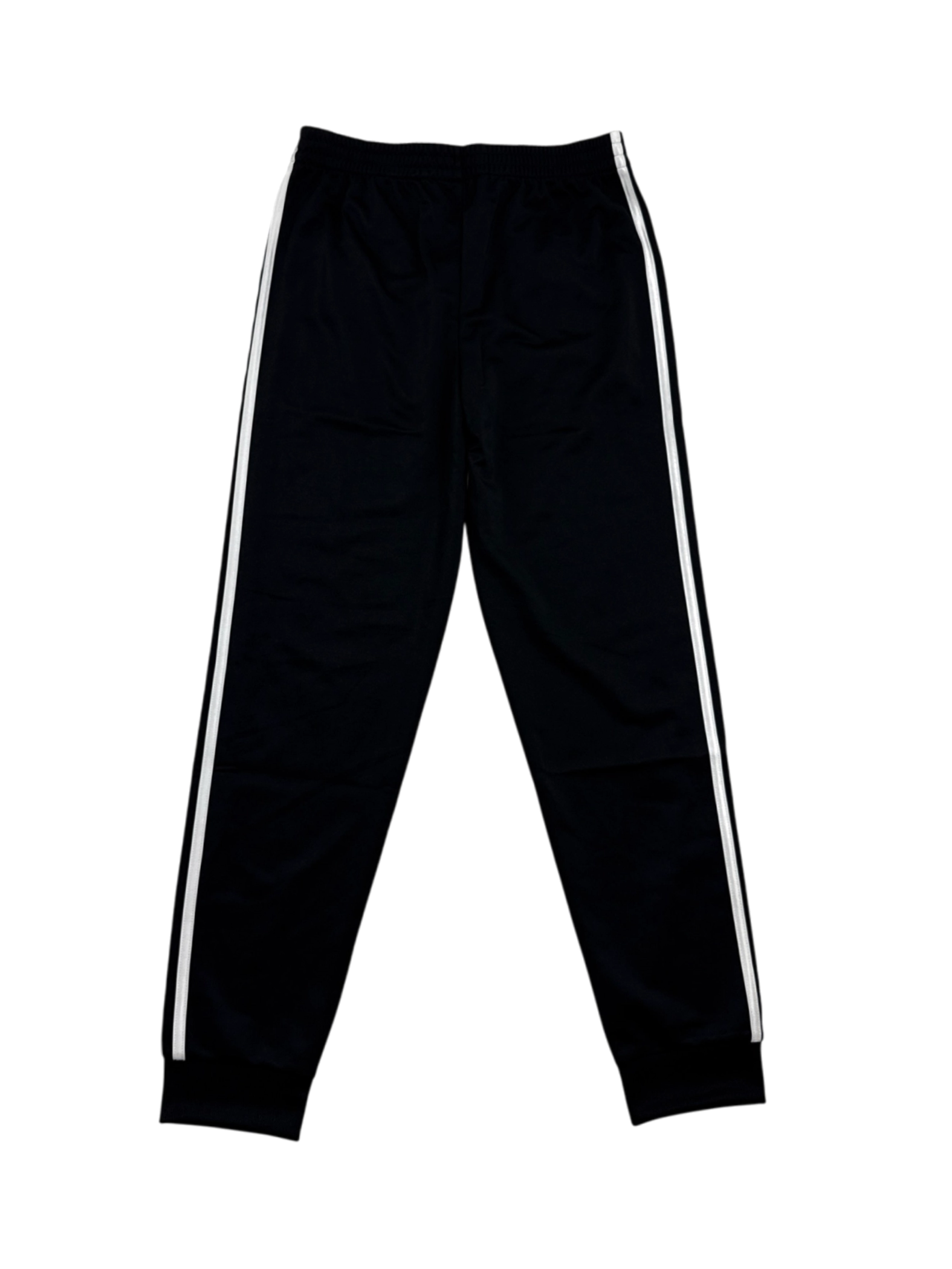 These pre-owned Adidas boys' joggers are the perfect blend of comfort and style. Crafted from durable polyester, these pants feature the iconic three stripes in white along the sides. Ideal for active kids, these joggers provide a comfortable and stylish fit for everyday wear or sports activities. A great addition to any young boy's wardrobe.