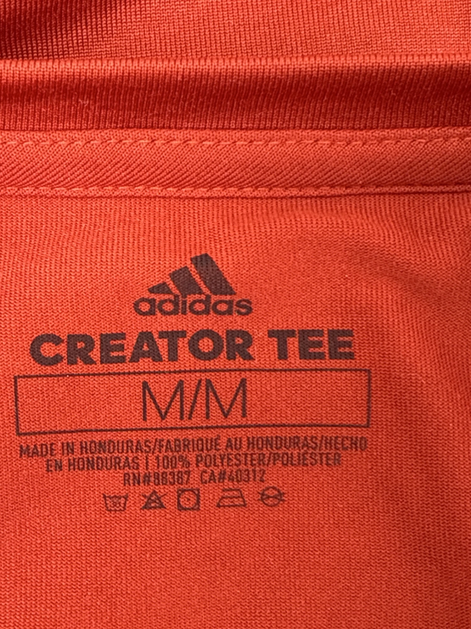 This pre-owned Adidas Creator Tee is a stylish and comfortable activewear t-shirt designed for boys. The tee is in excellent condition. It's perfect for everyday wear or for sports activities. It features a vibrant red color with a cool graphic on the front. Made from 100% polyester, this tee is designed to keep you cool and comfortable. Grab this sporty tee to enhance your wardrobe today!