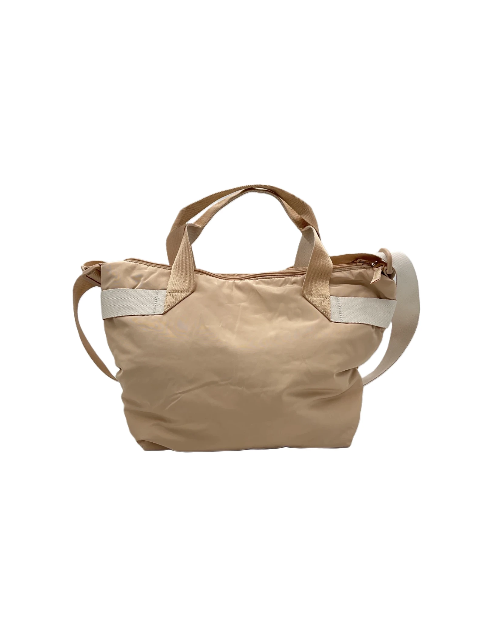 This is a shopper tote bag with a puffer style made partially from recycled materials and featuring multiple zip pockets.