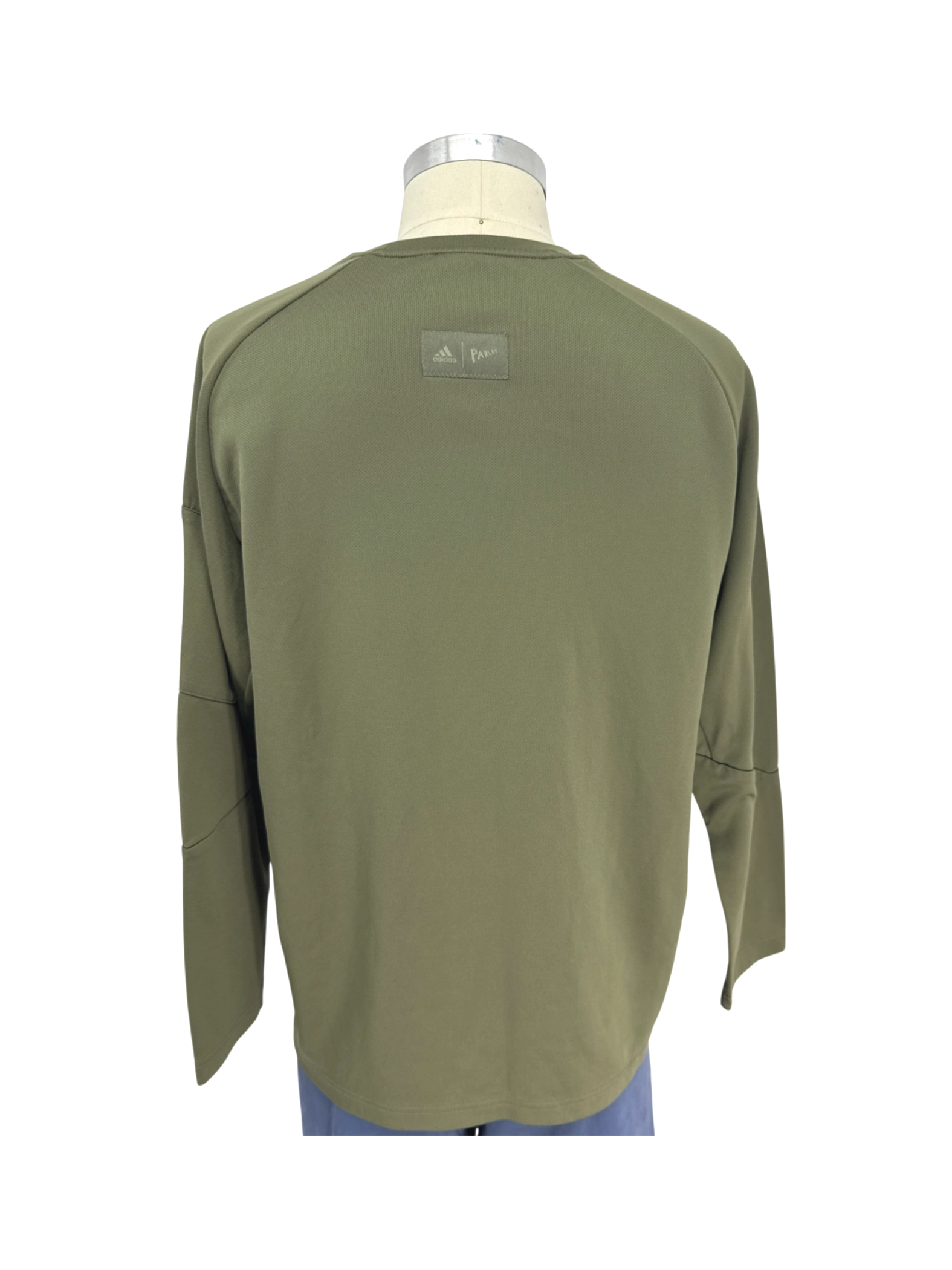 Elevate your casual wardrobe with this pre-owned Adidas Parley sweatshirt. This stylish pullover boasts a classic crew neck and long sleeves. Crafted from a blend of recycled polyester and cotton, this sweater ensures both comfort and sustainability. Perfect for cooler seasons, its versatile design makes it ideal for layering or wearing on its own. This stylish sweater is a perfect addition to your everyday wear.