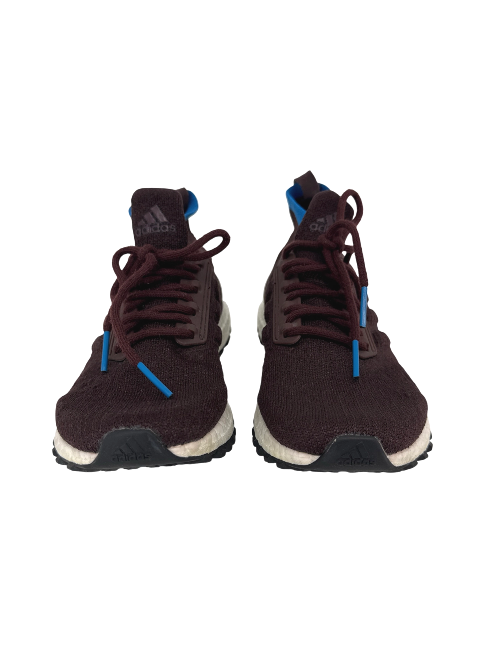 Step out in style with these pre-owned Adidas Ultra Boost sneakers. These stylish and durable sneakers are designed for comfort and performance. Perfect for those chilly winter days and fall adventures. The dark brown and blue color combination adds a touch of sophistication, while the Adidas quality ensures long-lasting wear. Whether you're hitting the gym, the trails, or just running errands, these sneakers are a great choice. Get ready to turn heads with these trendy and versatile shoes.