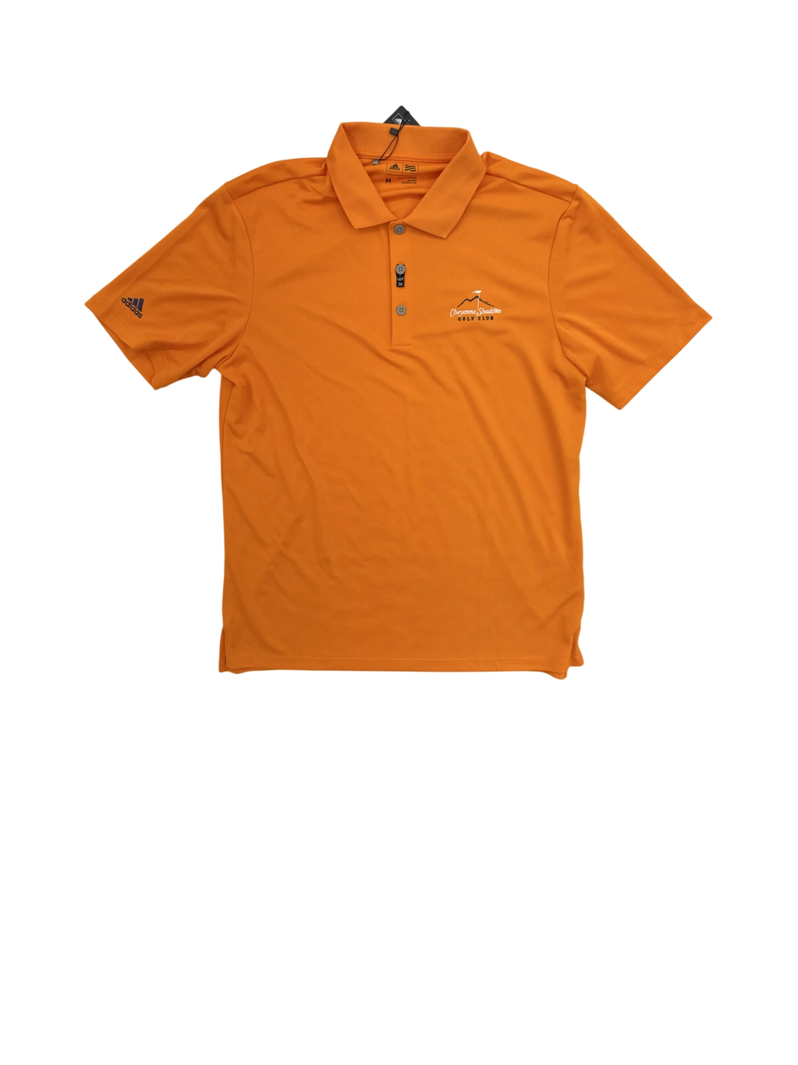 Elevate your golf game with this pre-owned Adidas polo shirt. This stylish shirt is in excellent condition, perfect for the course or casual wear. The vibrant orange color and sleek design offer a modern look. Made from 100% polyester, it provides comfort and durability. With a classic polo collar and short sleeves, it's ideal for warm weather. This Adidas golf shirt is a great addition to any activewear collection. Get ready to tee off in style!