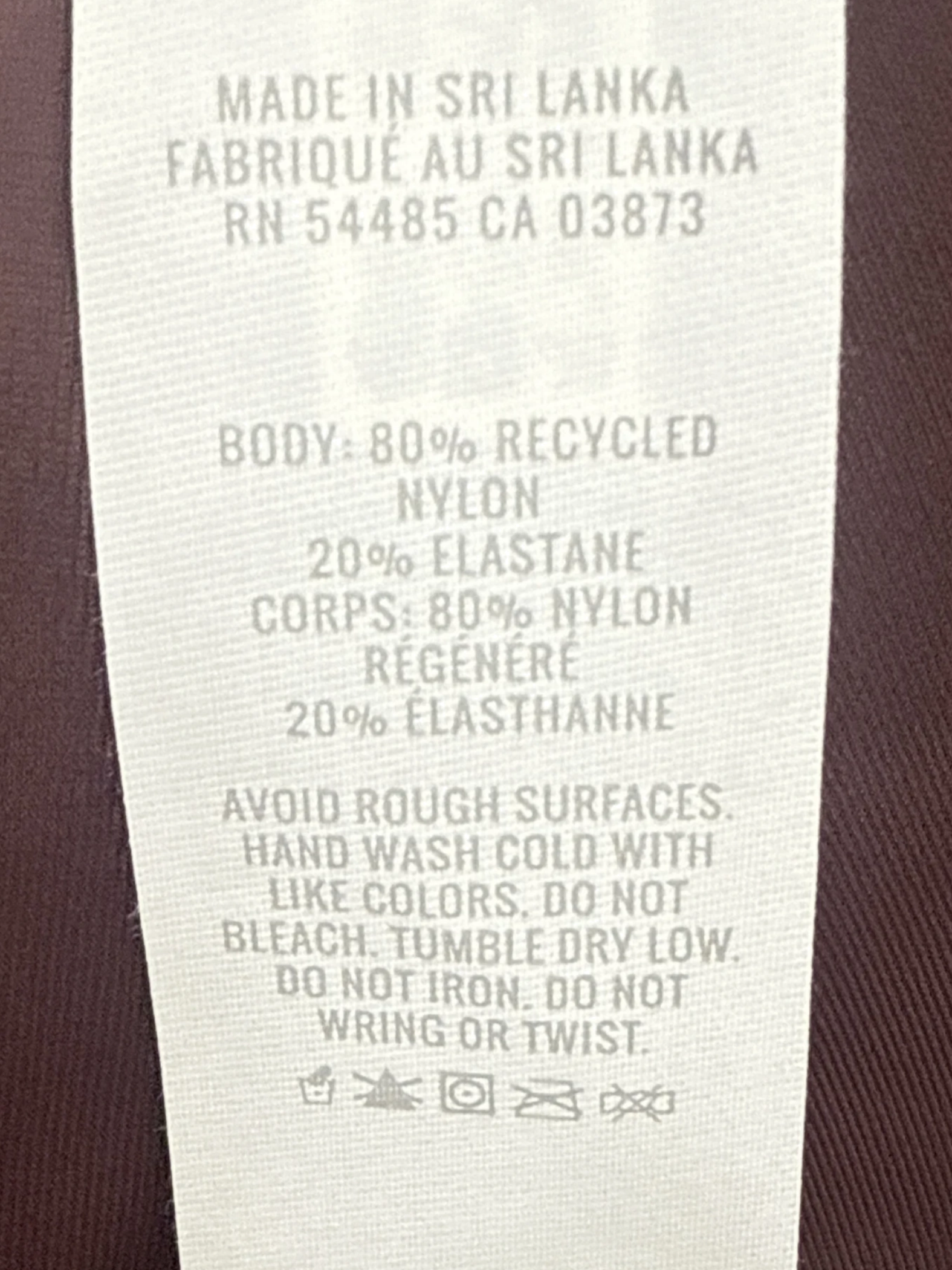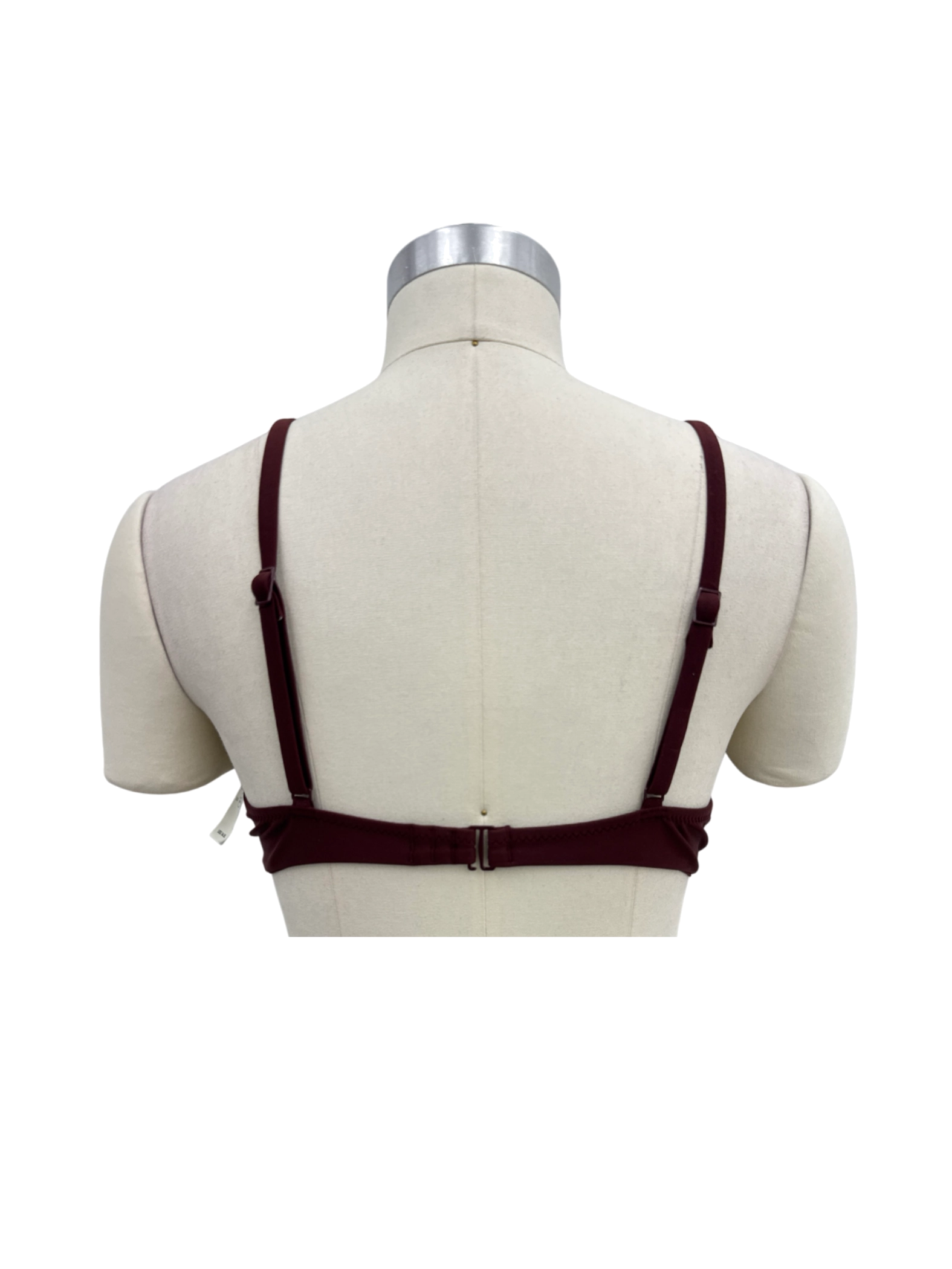 This pre-owned Aerie bikini top is a stylish addition to your swimwear collection. Crafted from a blend of recycled nylon and elastane, this top offers a comfortable and eco-friendly design. The wine color adds a touch of sophistication, making it perfect for your summer beach days. With its chic design, this bikini top is ideal for swimming, sunbathing, or simply lounging by the pool. The quality materials ensure durability and a flattering fit.