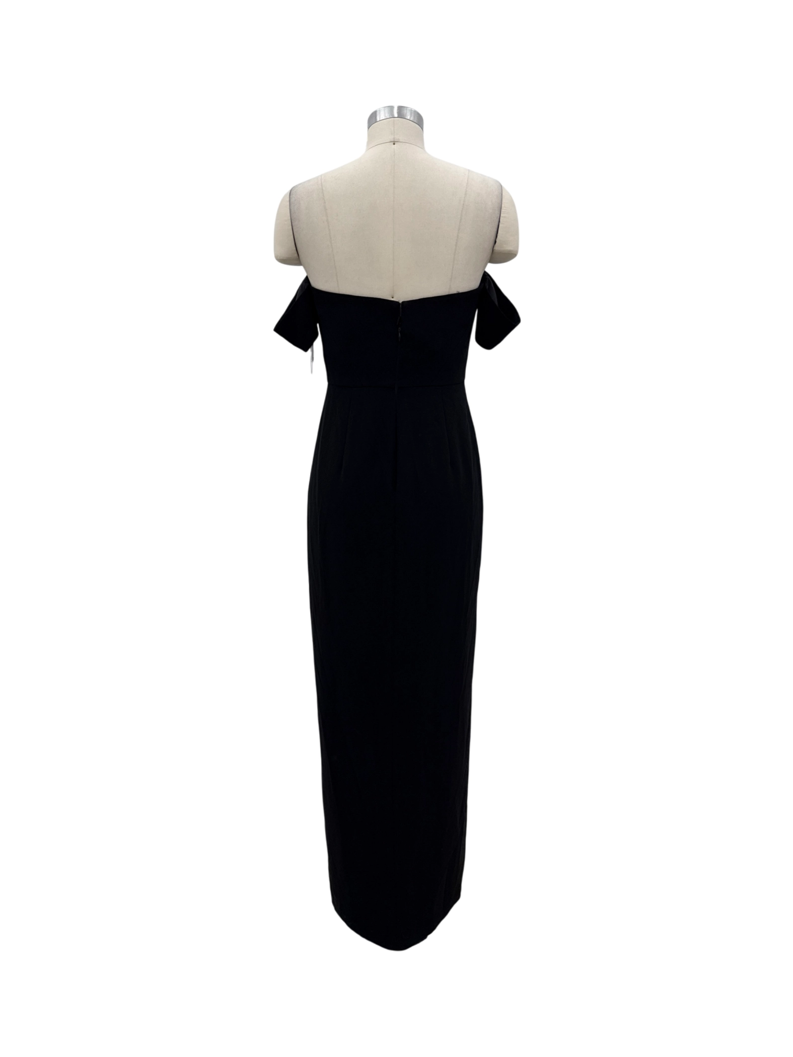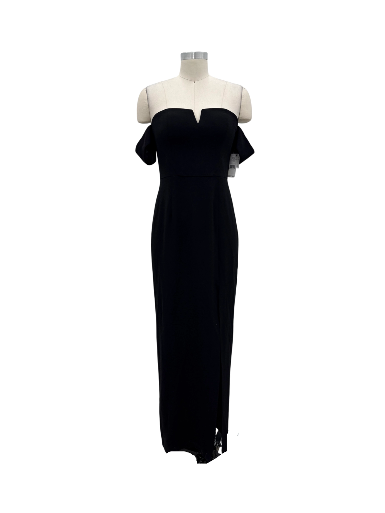 Elegant Aidan Mattox black maxi dress, a perfect choice for your next cocktail party or formal event. This stunning off-the-shoulder dress features a flattering neckline and a figure-hugging silhouette, designed to make a statement. Crafted from a blend of polyester and elastane, it offers both comfort and a luxurious feel. The dress is in excellent condition, offering a sophisticated and timeless look. Ideal for making a grand entrance, this dress combines classic design with modern appeal.