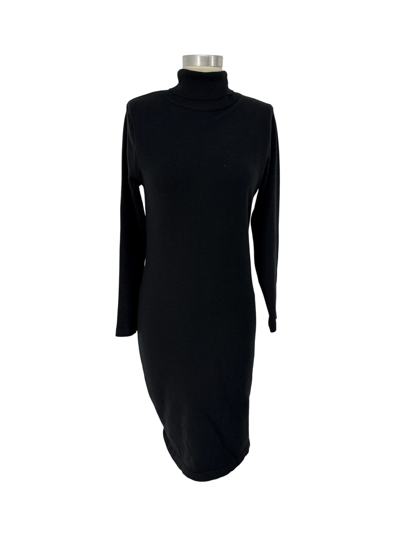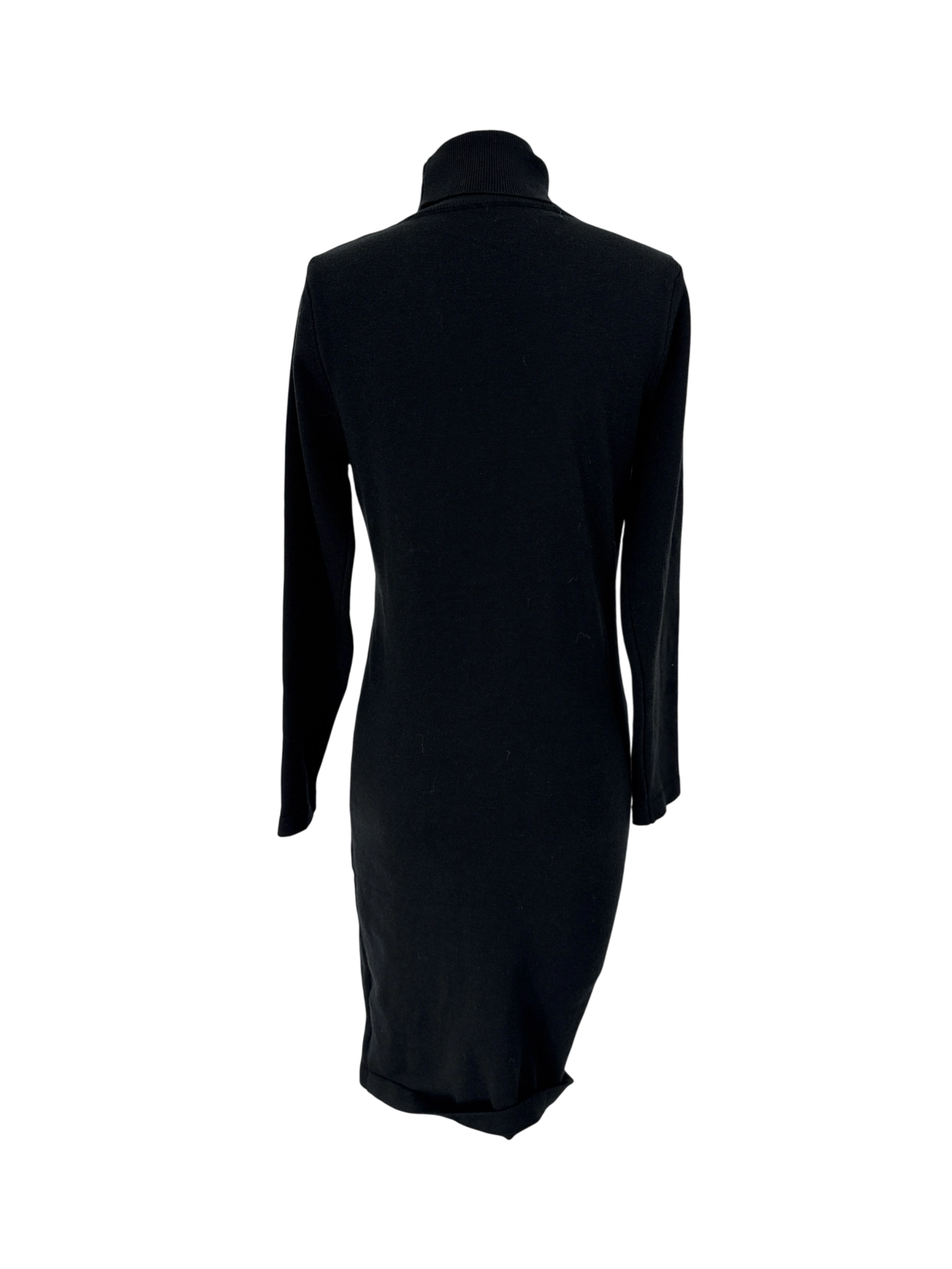 This pre-owned Alicedudu dress is the perfect addition to your fall and winter wardrobe. It features a sleek, black bodycon silhouette with a chic turtleneck, and long sleeves. Crafted from a comfortable blend of polyester, acrylic, viscose and polyamide, this midi dress offers both style and warmth. It's a versatile piece that can be dressed up or down for any occasion. A timeless and elegant piece at a great price!