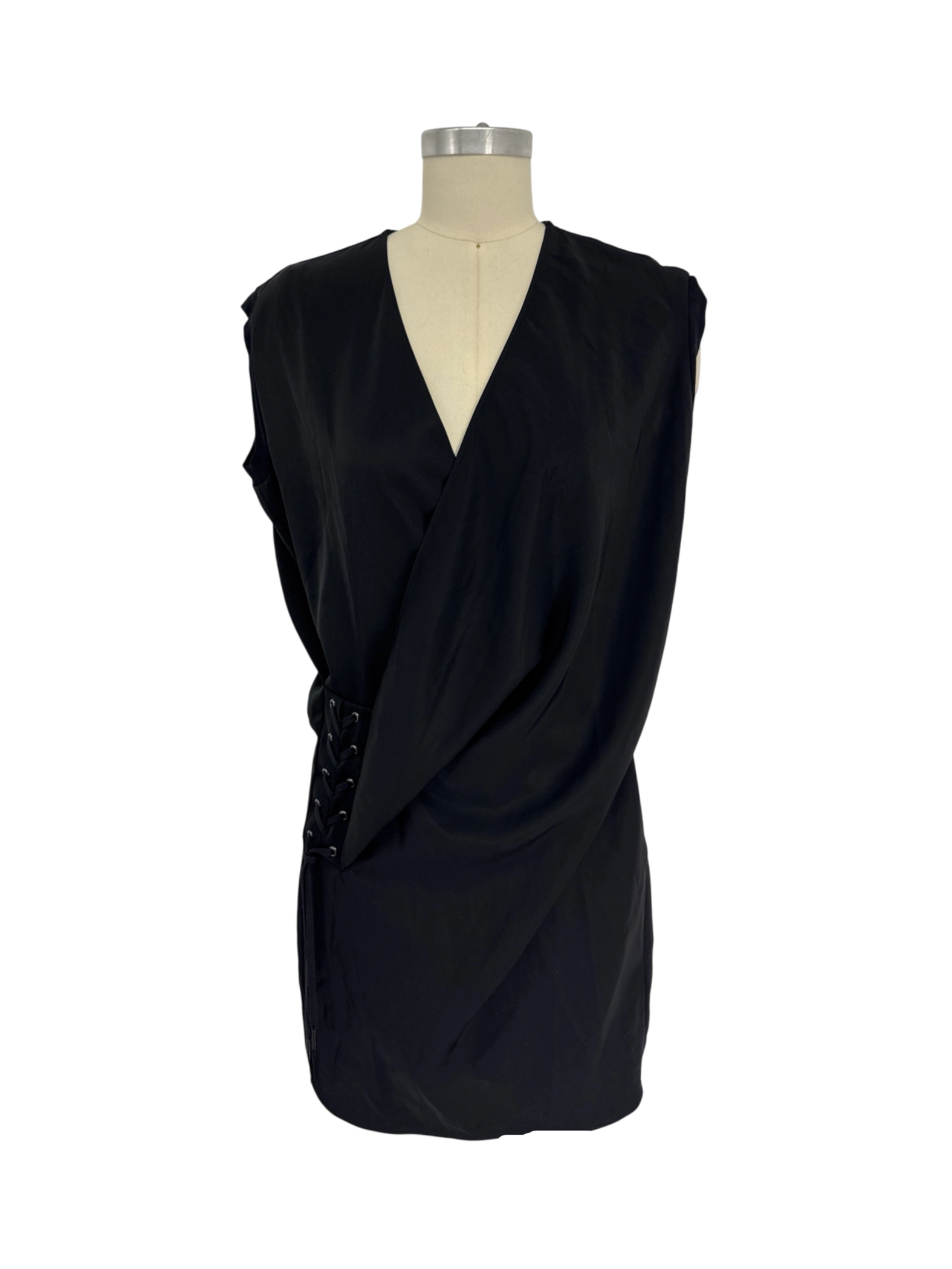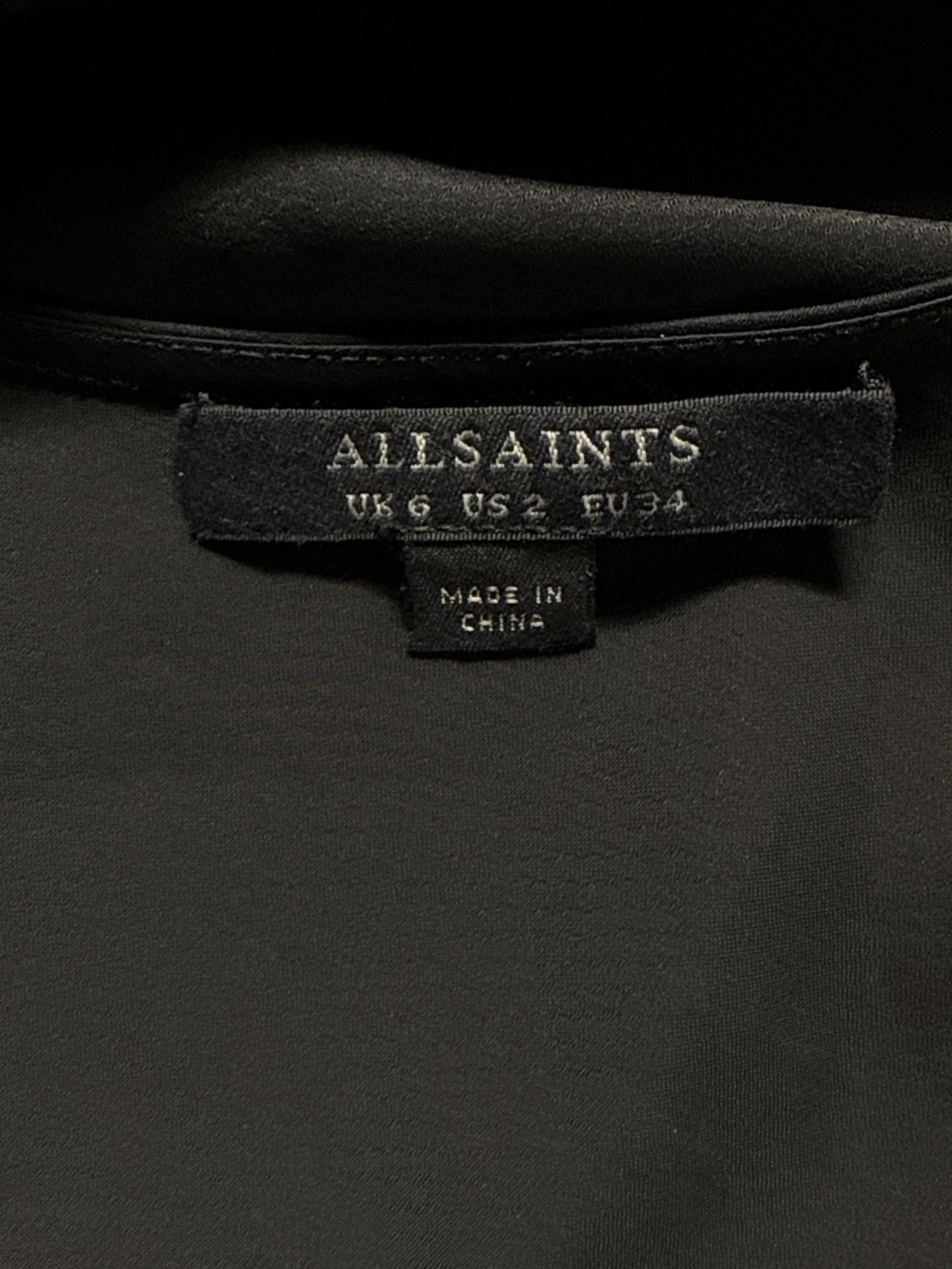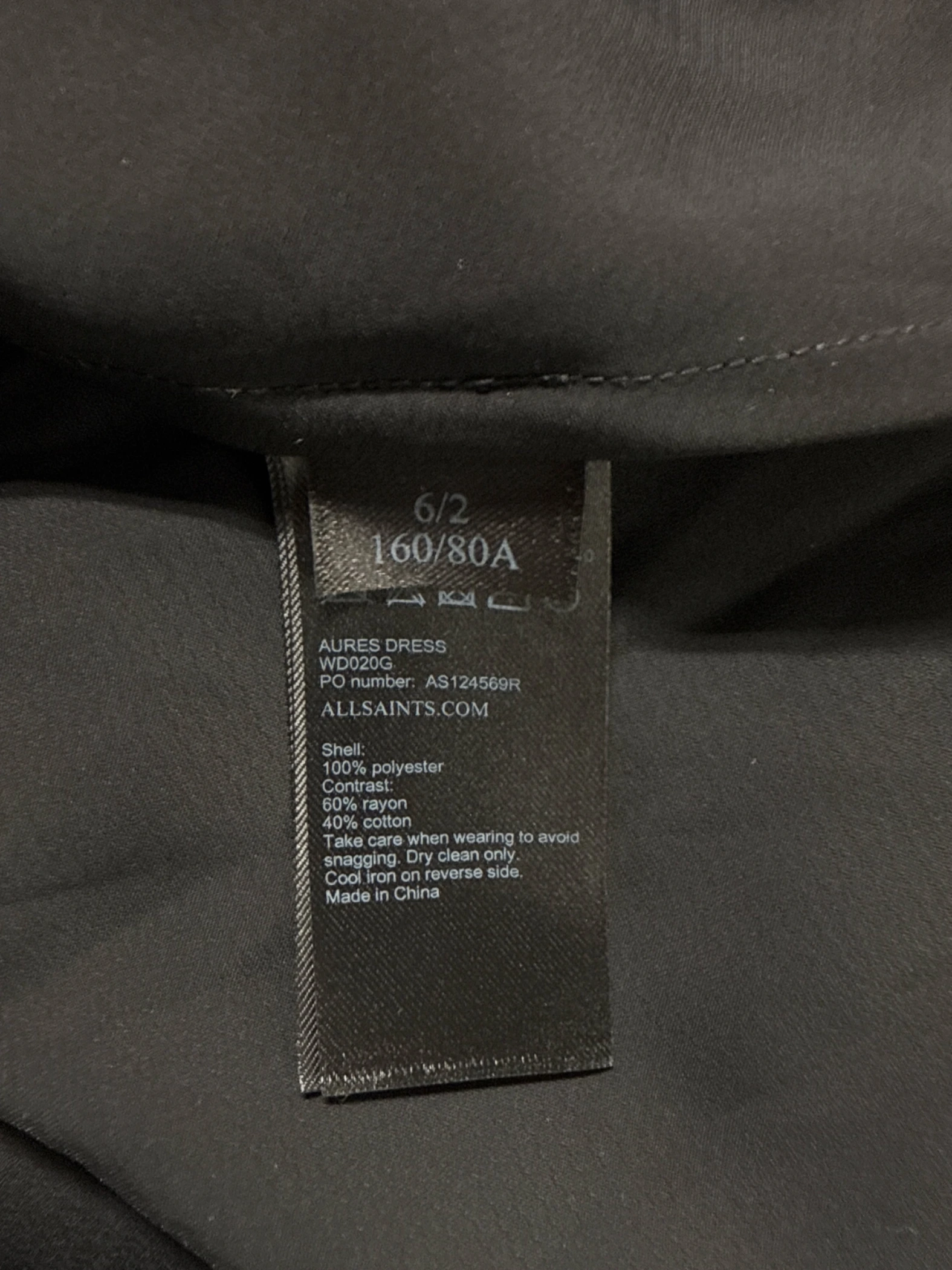 This chic ALLSAINTS dress is a stylish find. The elegant sheath silhouette with a v-neck design, makes it ideal for evening wear. Its minimalist design and color versatility allow it to pair seamlessly with a variety of shoes. Made from a blend of polyester and rayon, it offers both comfort and durability. A perfect addition to any wardrobe, offering a blend of sophistication and modern flair.