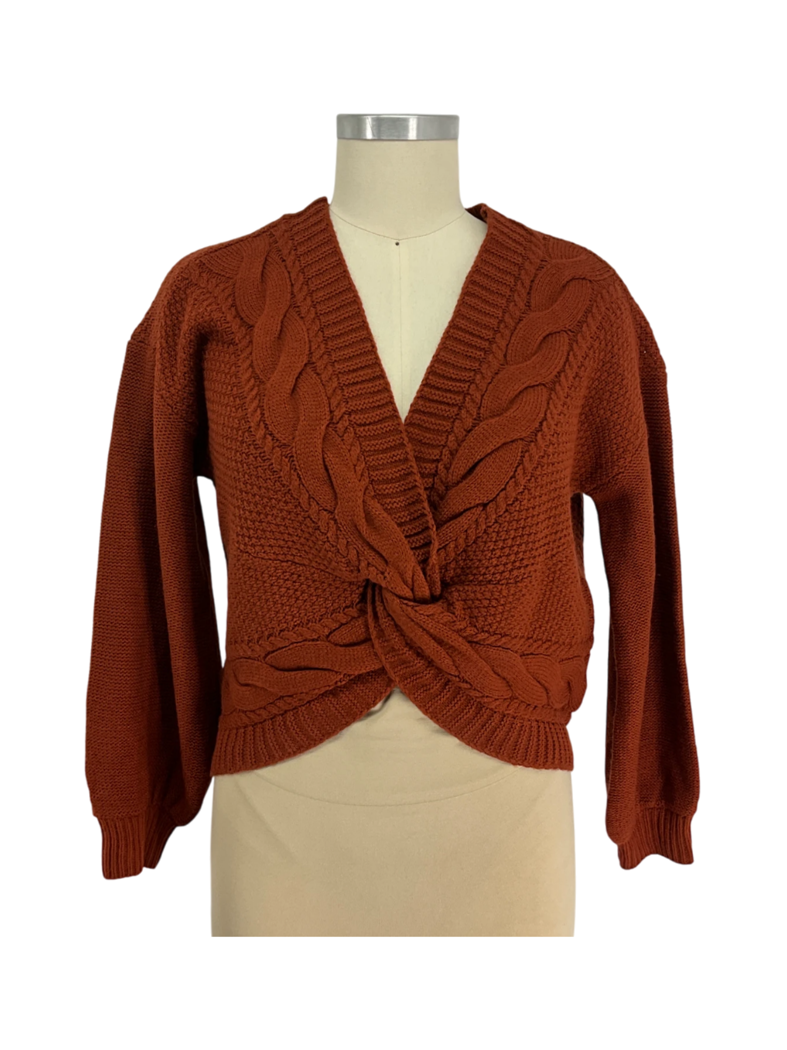 Almost Famous Rust Orange Twist V-Neck Sweater
