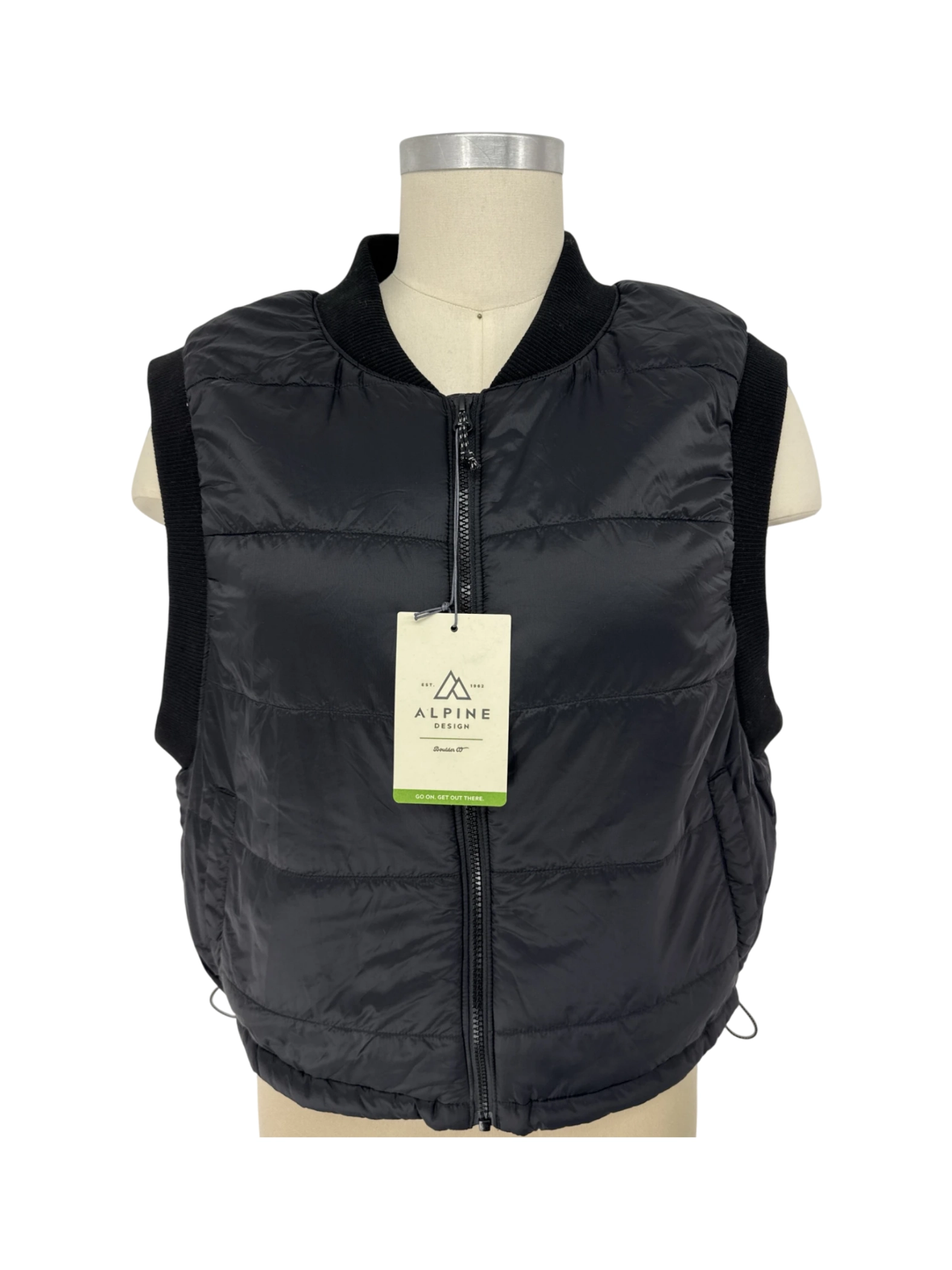 Elevate your outerwear collection with this stylish and functional Alpine Design puffer vest, perfect for layering during colder months. This pre-owned vest features a sleek black design, crafted with a recycled nylon shell and polyester lining for a sustainable touch. The vest boasts a comfortable fit, designed with a mix of polyester, nylon, and spandex. Ideal for casual outings or outdoor adventures, offering both warmth and versatility. A great addition to your wardrobe, in great condition.