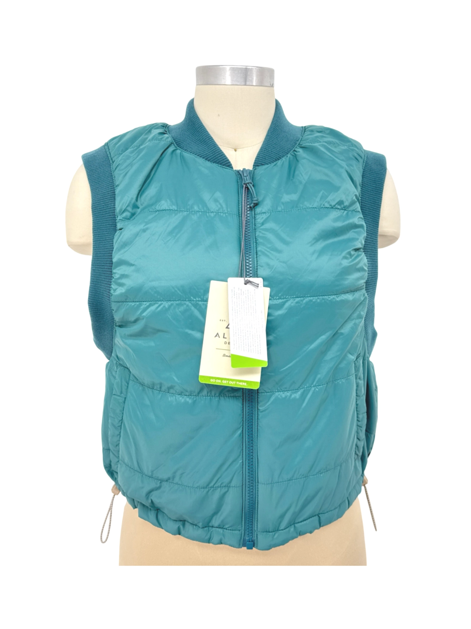 Embrace the outdoors with this pre-owned Alpine Design Puffer Vest, a perfect addition to your outerwear collection. This teal vest, made with recycled nylon and polyester, offers warmth and style. Ideal for layering in the fall and winter, it features a comfortable fit and a sleek design. This versatile piece is perfect for hikes, casual outings, or everyday wear. Shop now and add this sustainable and fashionable vest to your wardrobe!