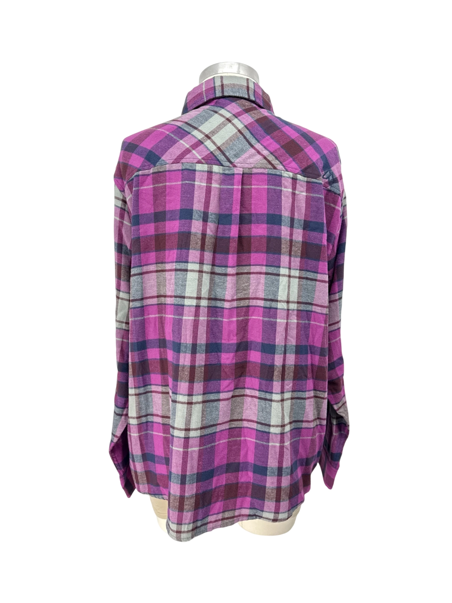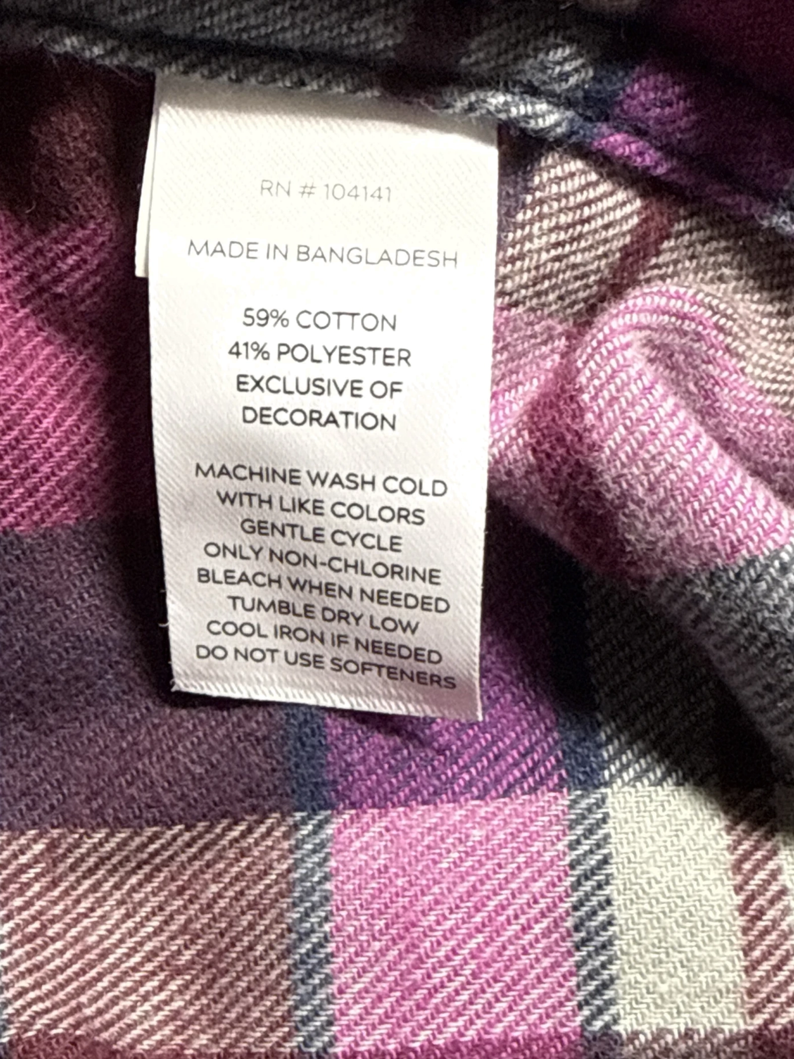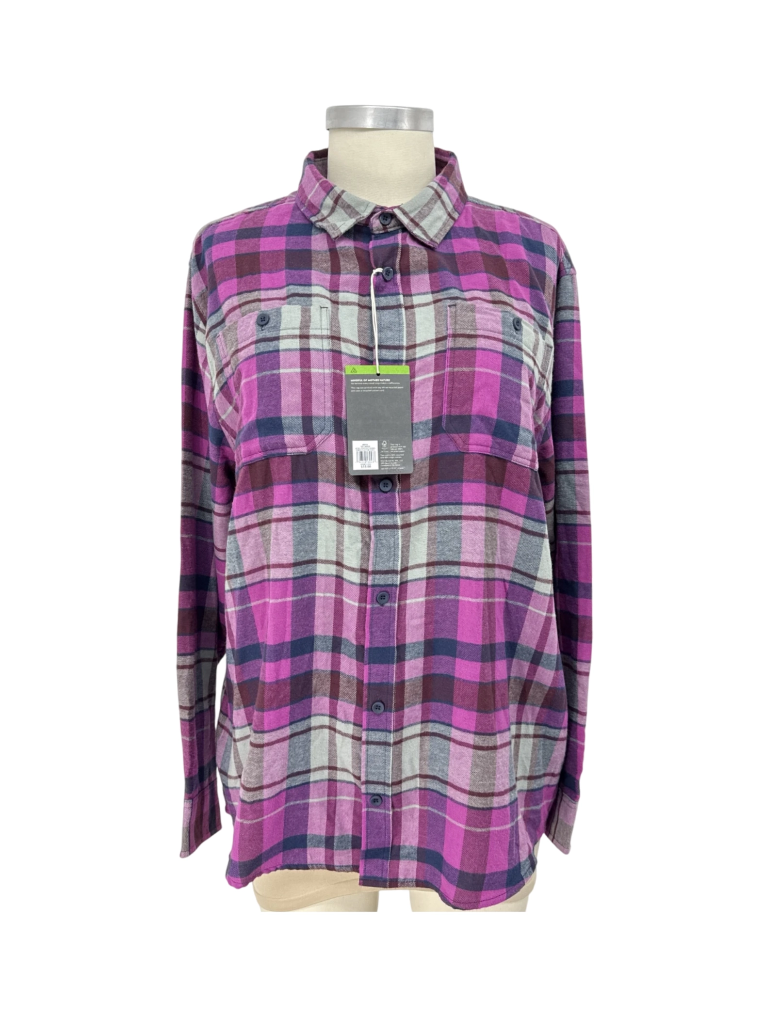This pre-owned Alpine Design button-up shirt is a perfect addition to your fall or winter wardrobe. The plaid pattern in shades of purple and gray offers a stylish and classic look, while the long sleeves provide warmth. Made from a blend of cotton and polyester, this shirt offers comfort and durability. It's ideal for casual outings or layering, this shirt is a versatile piece for any closet.