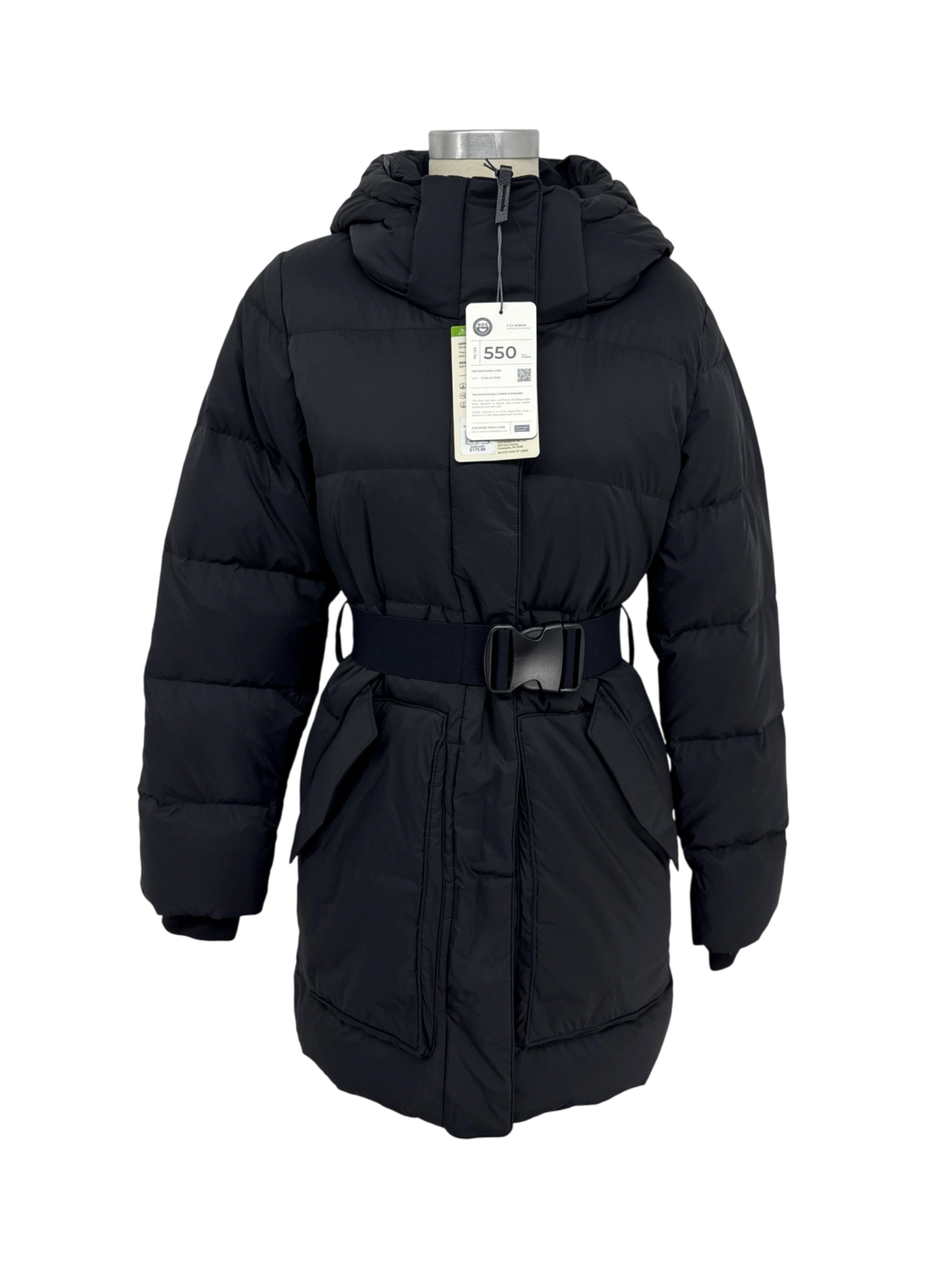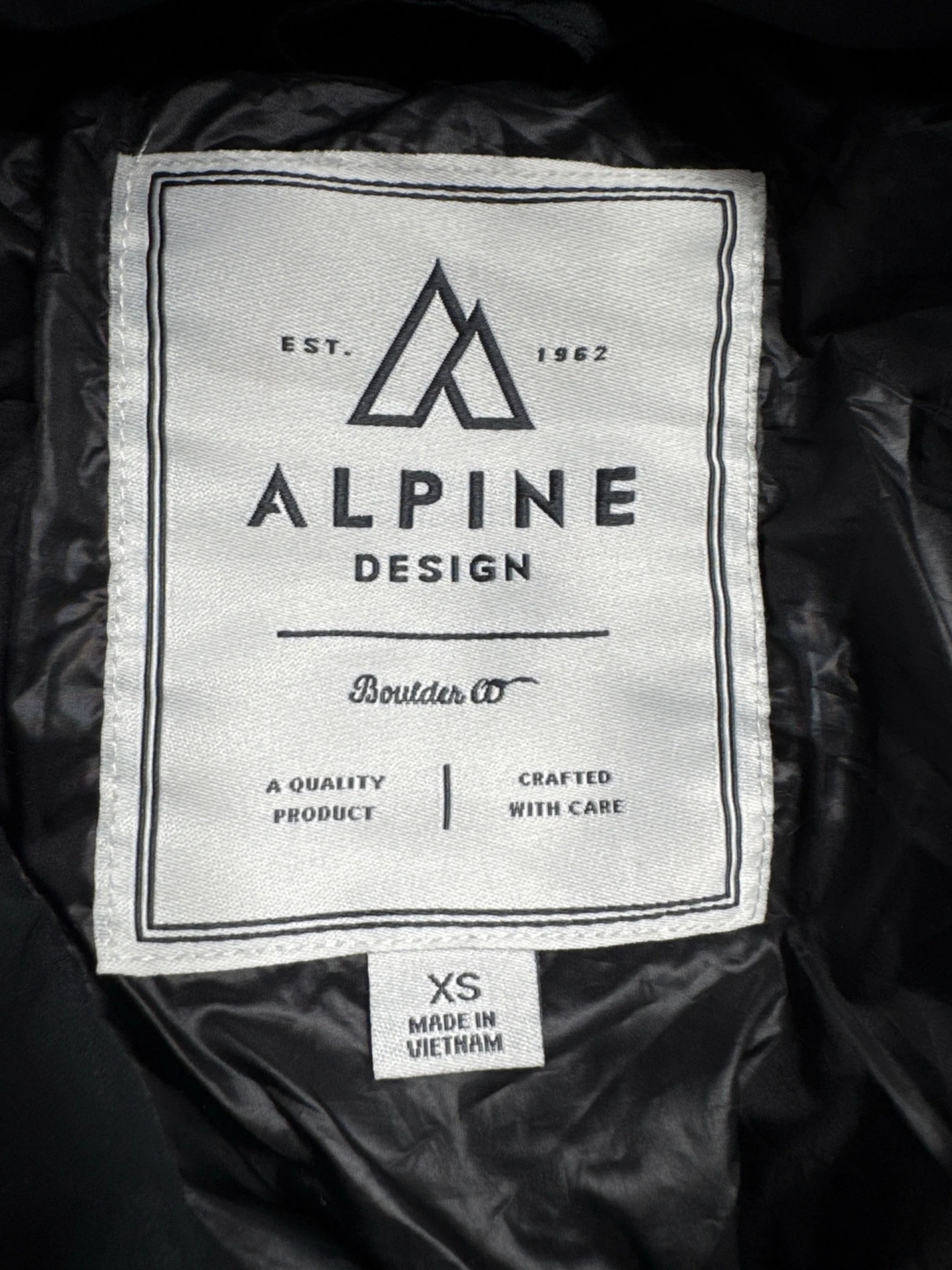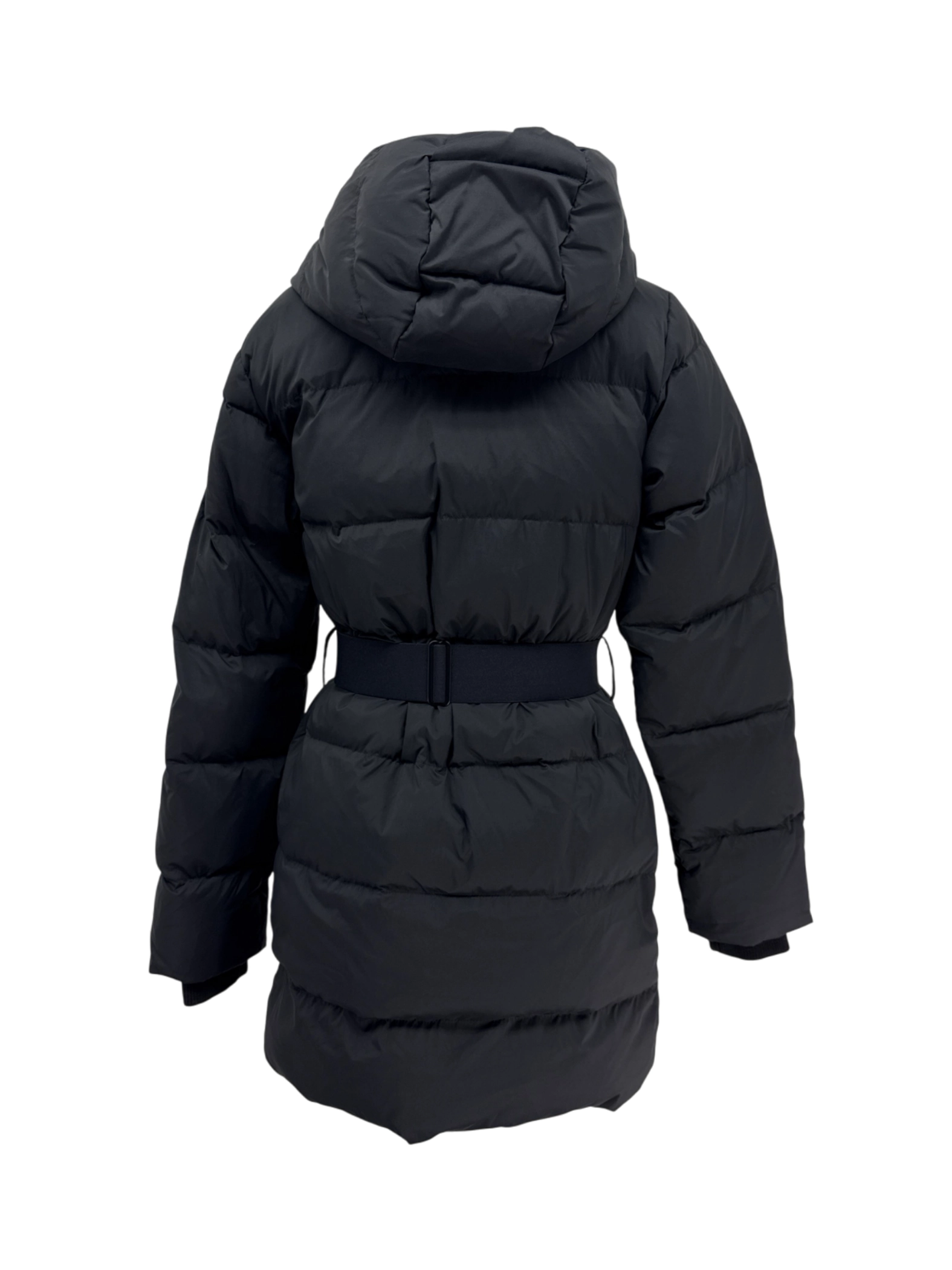 Stay warm and stylish this winter with this Alpine Design black hooded puffer jacket, perfect for the colder months. Crafted from durable nylon and polyester, this jacket provides excellent insulation with a belt for a flattering silhouette. It is a pre-owned item in excellent condition. The jacket has a sleek black design and is ready to keep you cozy and chic. Embrace the elements in style with this must-have winter coat.