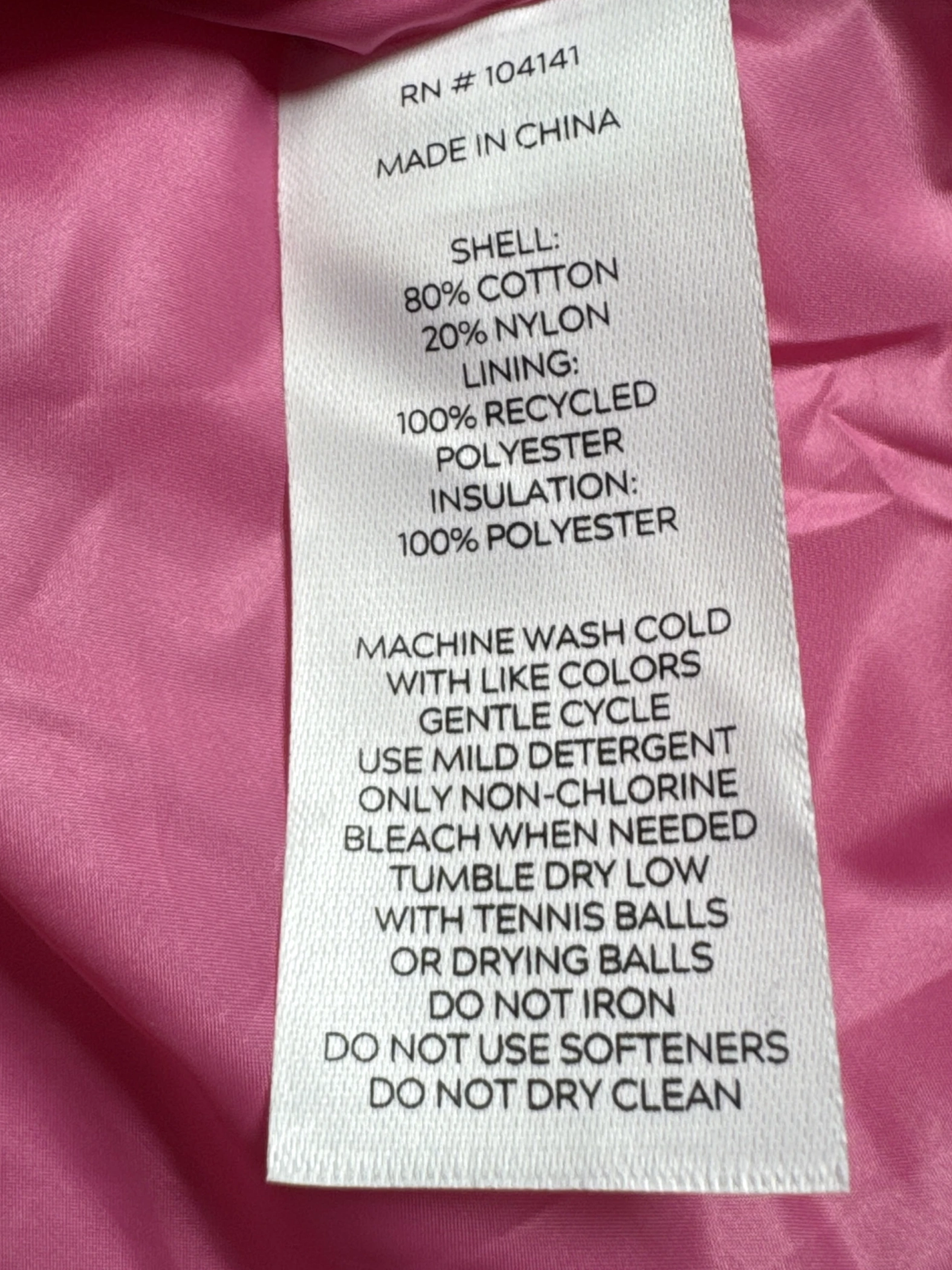 This stylish and gently used Alpine Design jacket is a perfect addition to your wardrobe. Crafted from a durable blend of cotton, nylon, and recycled polyester, this jacket offers both comfort and sustainability. The eye-catching pink hue adds a pop of color to any outfit. Ideal for spring and fall, this jacket is perfect for everyday wear. It is pre-owned but in great condition, offering excellent value.
