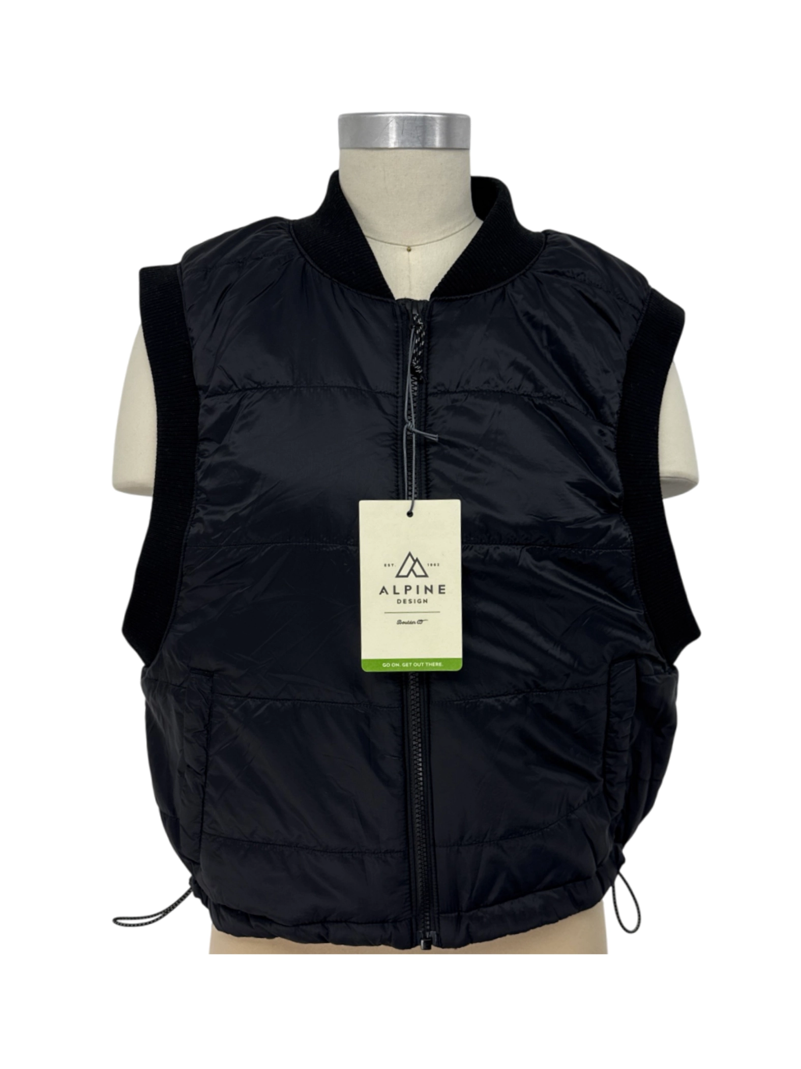 This pre-owned Alpine Design puffer vest is perfect for layering and staying warm in the colder months. Crafted with a recycled nylon shell, polyester lining, and a touch of spandex for flexibility, it offers both comfort and style. Its classic black color ensures versatility, while the quilted design adds a touch of elegance. Ideal for outdoor adventures or everyday wear, this vest is a sustainable and stylish addition to your wardrobe.