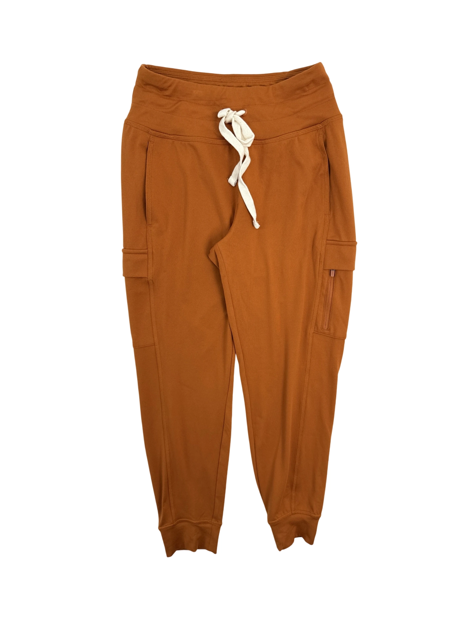 Elevate your activewear collection with these Alpine Design sweatpants, perfect for any workout or casual day out. Crafted from a comfortable blend of polyester and spandex, these pants offer both style and functionality. Featuring a stylish brown color, they're ideal for the fall and winter seasons. The elastic waistband ensures a secure fit, while the pockets add practicality. A versatile addition to your wardrobe, they blend comfort and performance seamlessly. Great for hiking, running, or just lounging around, these second-hand sweatpants are a must-have for the active woman.