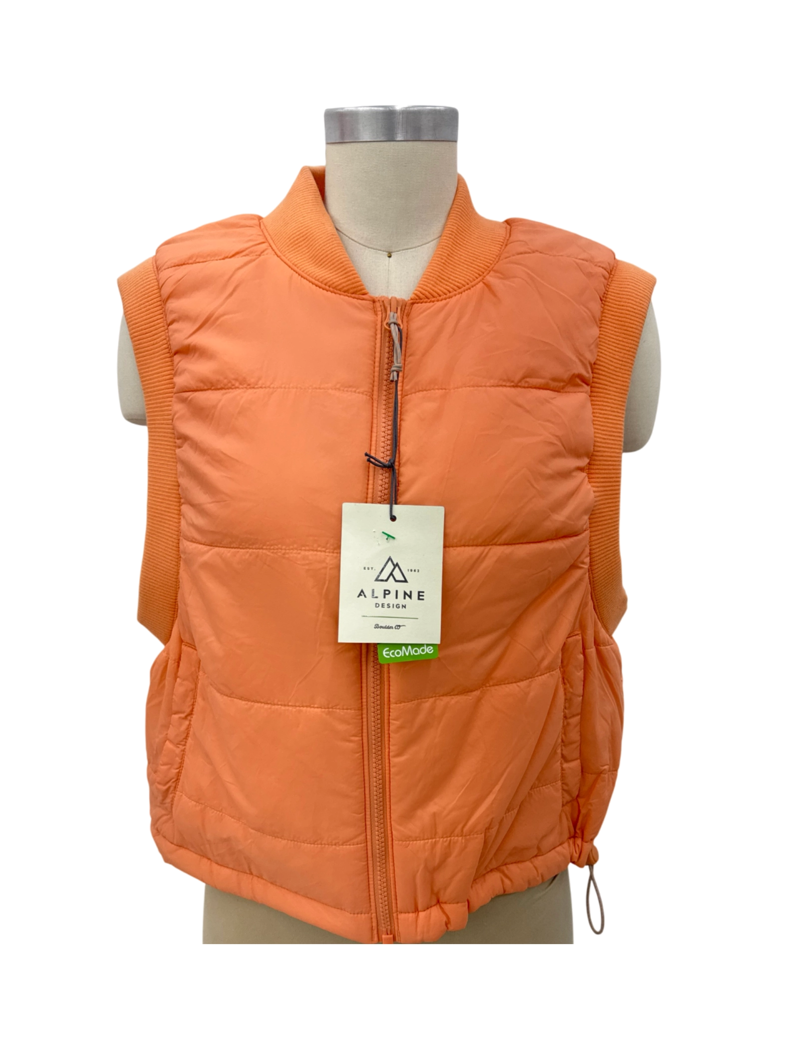 This pre-owned Alpine Design women's puffer vest is a stylish and versatile outerwear piece. The vibrant orange color and quilted design make it perfect for layering during the spring, fall, and winter months. Constructed with recycled nylon, recycled polyester, and a touch of spandex, this vest is both eco-friendly and comfortable. It features a full zip closure, providing a snug fit, and is in excellent condition. Ideal for outdoor adventures or everyday wear.