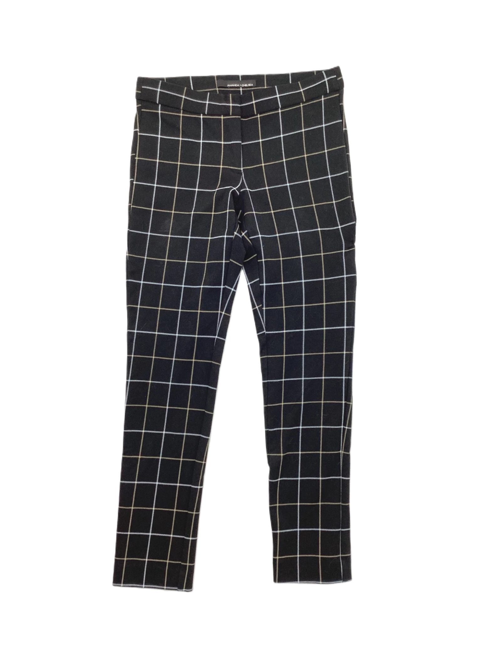 Elevate your wardrobe with these chic pre-owned Amanda + Chelsea dress pants. Featuring a classic checkered pattern in black, these pants offer a stylish and versatile look. Made with a blend of rayon, nylon, and spandex, they offer a comfortable and flattering fit. Perfect for any season, these pants are a must-have for the fashion-conscious woman. Add a touch of sophistication to your collection.