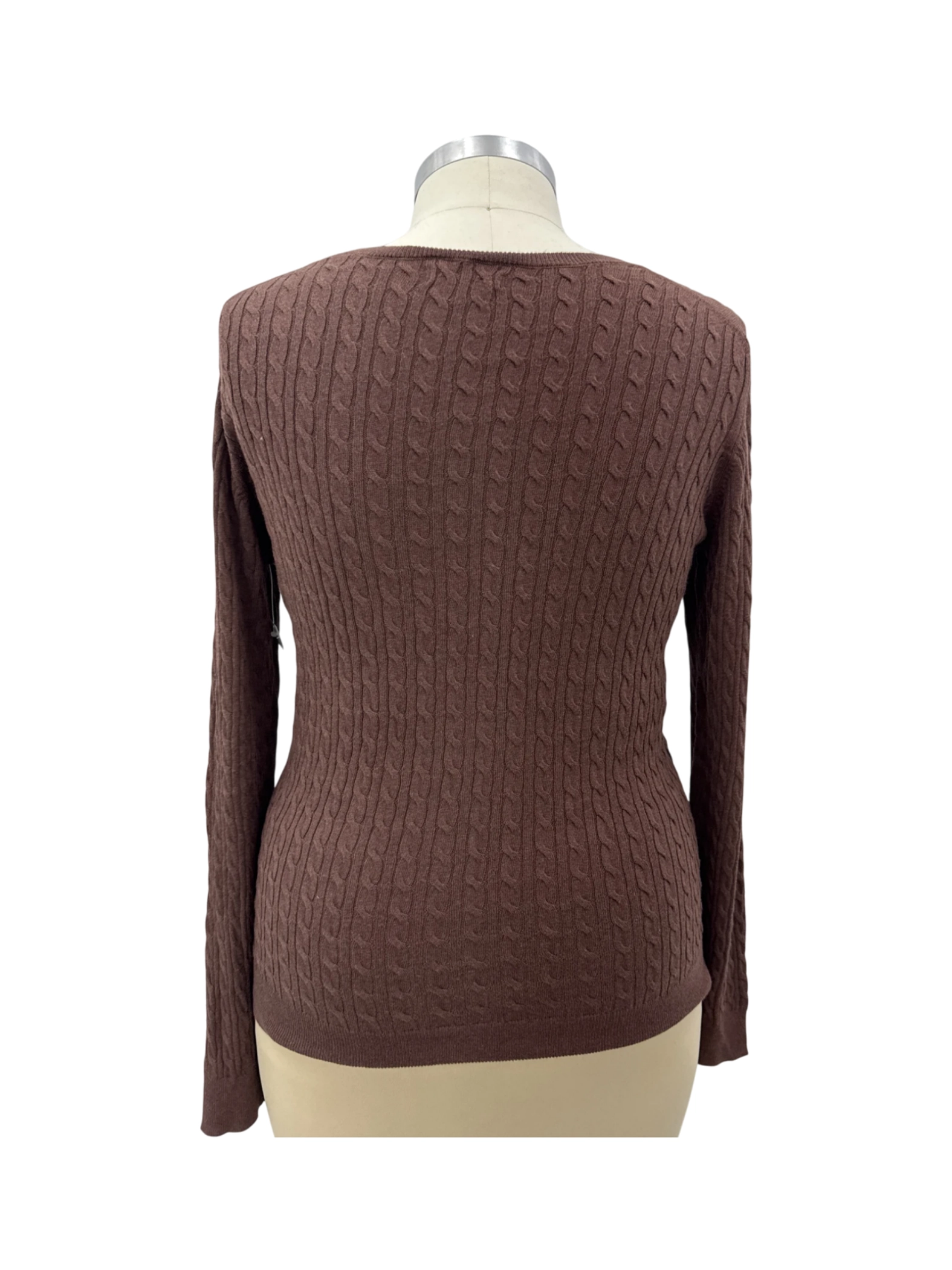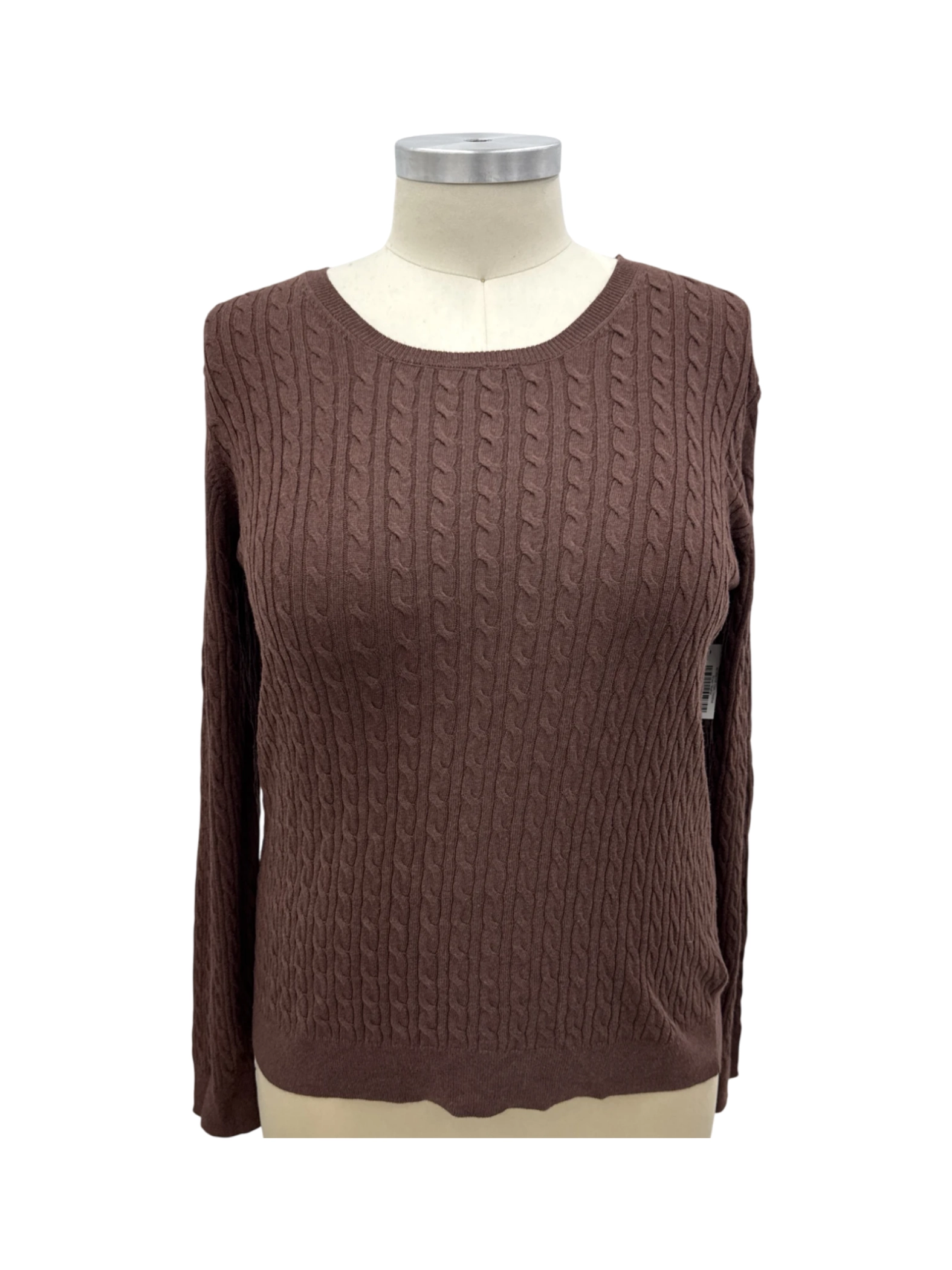 This pre-owned Amazon Essentials sweater is a cozy addition to any wardrobe. Featuring a classic cable knit design, this sweater offers both style and comfort. The warm brown color is perfect for the fall and winter seasons. Made from a soft cotton blend, it's ideal for everyday wear. A versatile choice, perfect for casual outings or layering.