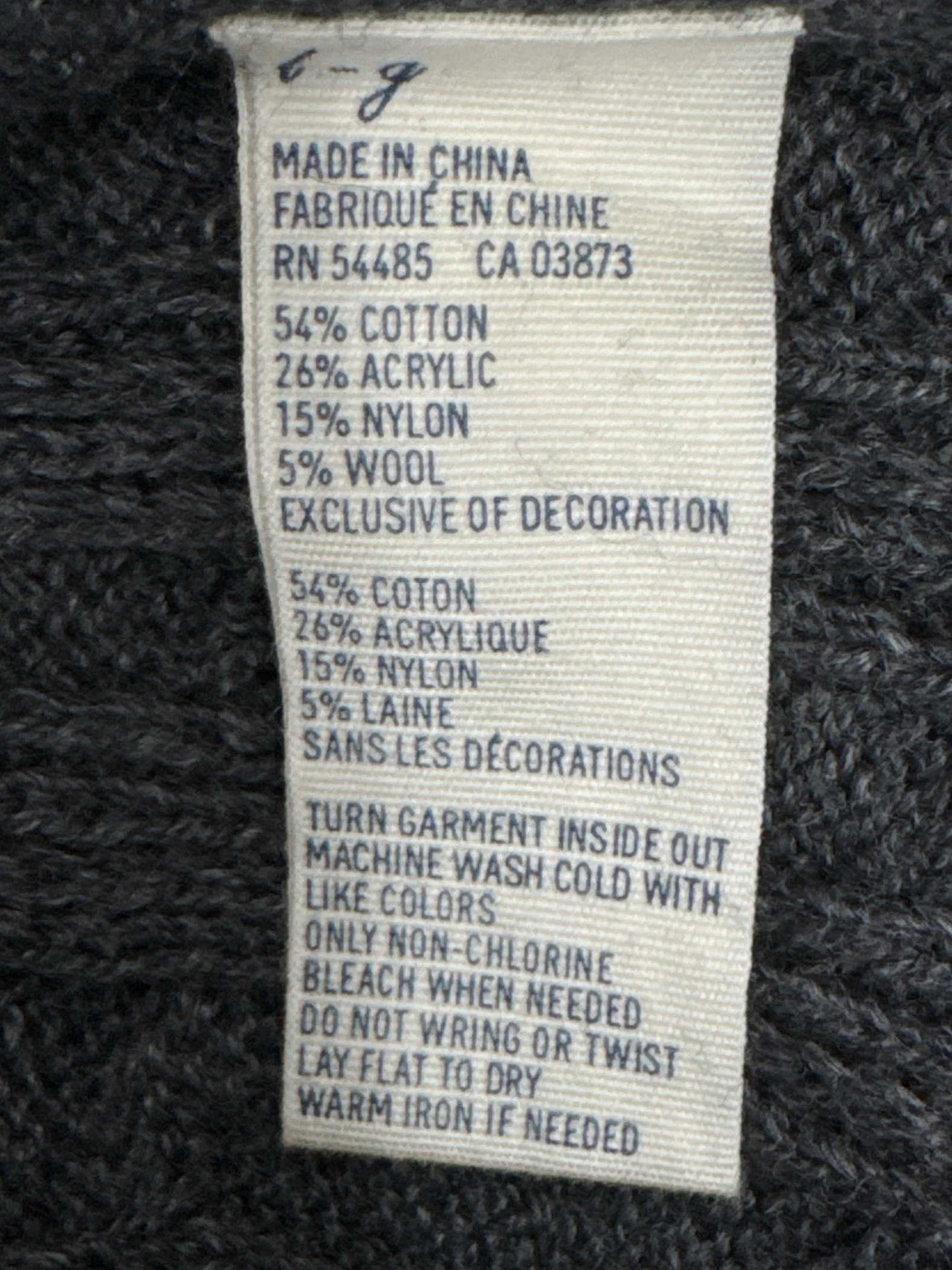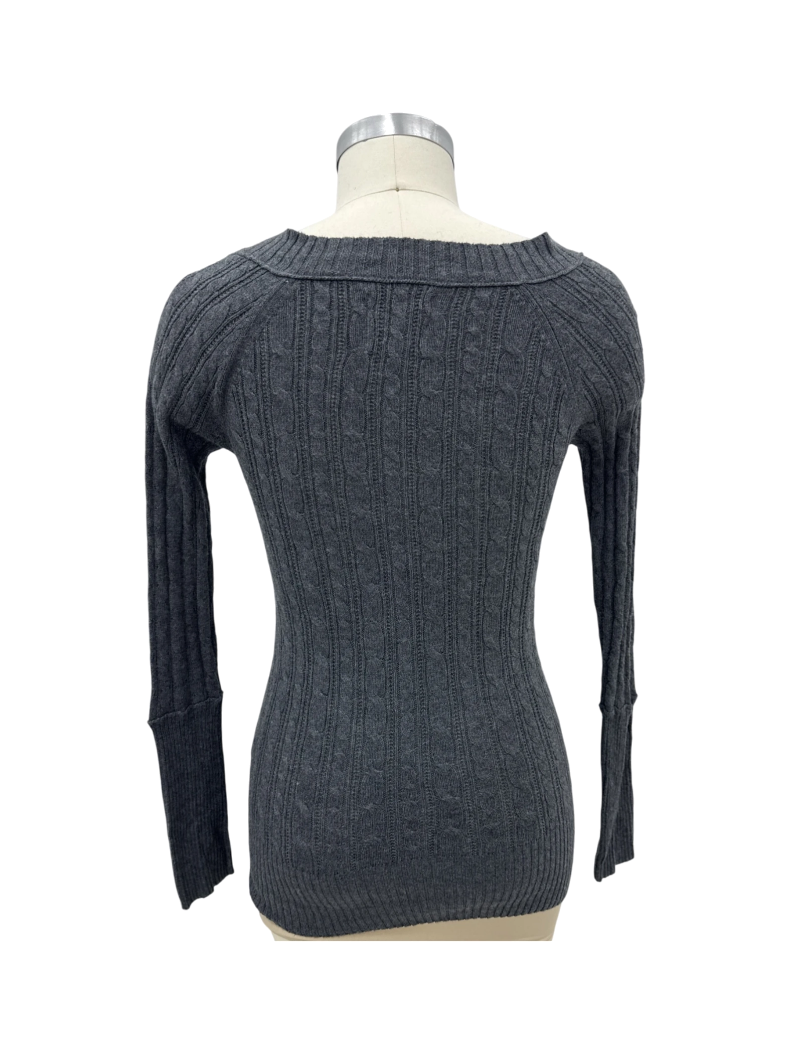 Elevate your wardrobe with this stylish pre-owned American Eagle Outfitters sweater. Crafted from a comfortable blend of cotton, acrylic, nylon, and wool, this sweater features a flattering V-neck and a classic silhouette, perfect for layering. Its elegant gray hue adds versatility, making it ideal for both casual and semi-formal occasions. An excellent addition to any collection, offering both comfort and style. Ideal for fall or winter.