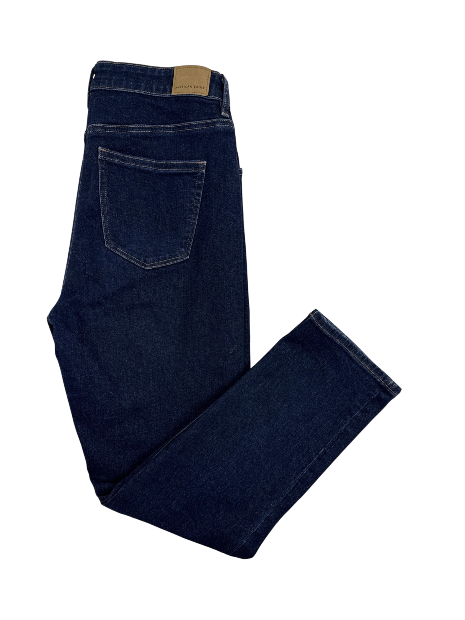 These pre-owned American Eagle jeans offer a classic straight leg fit in a timeless dark denim wash. These jeans are perfect for creating versatile outfits. Crafted from durable denim, they offer both comfort and style. The mid-rise waist provides a flattering silhouette, making them a wardrobe essential for any season. These jeans are a must-have for everyday wear.