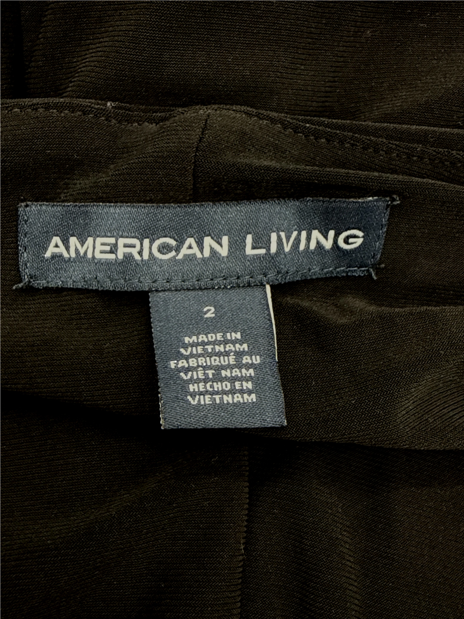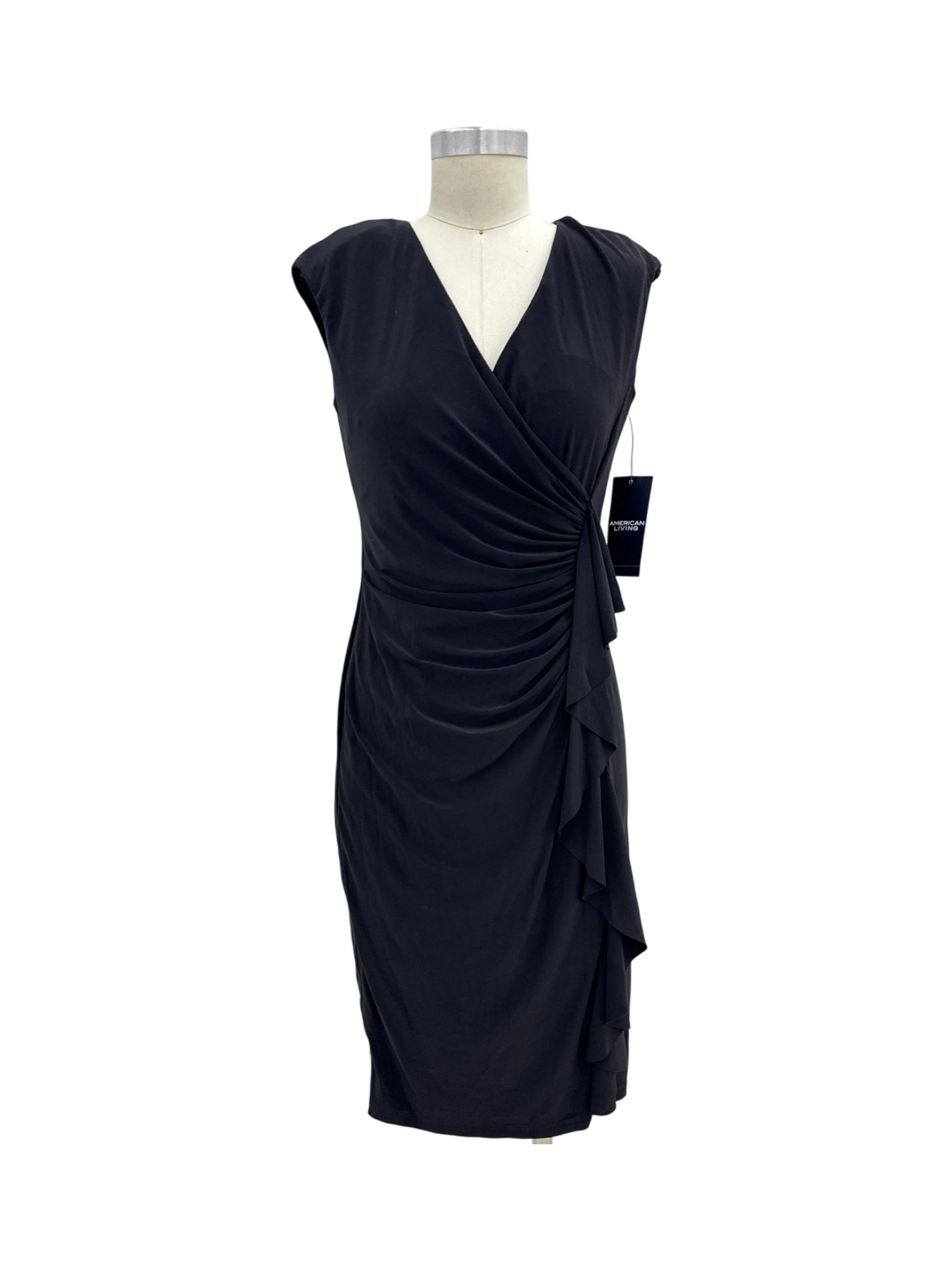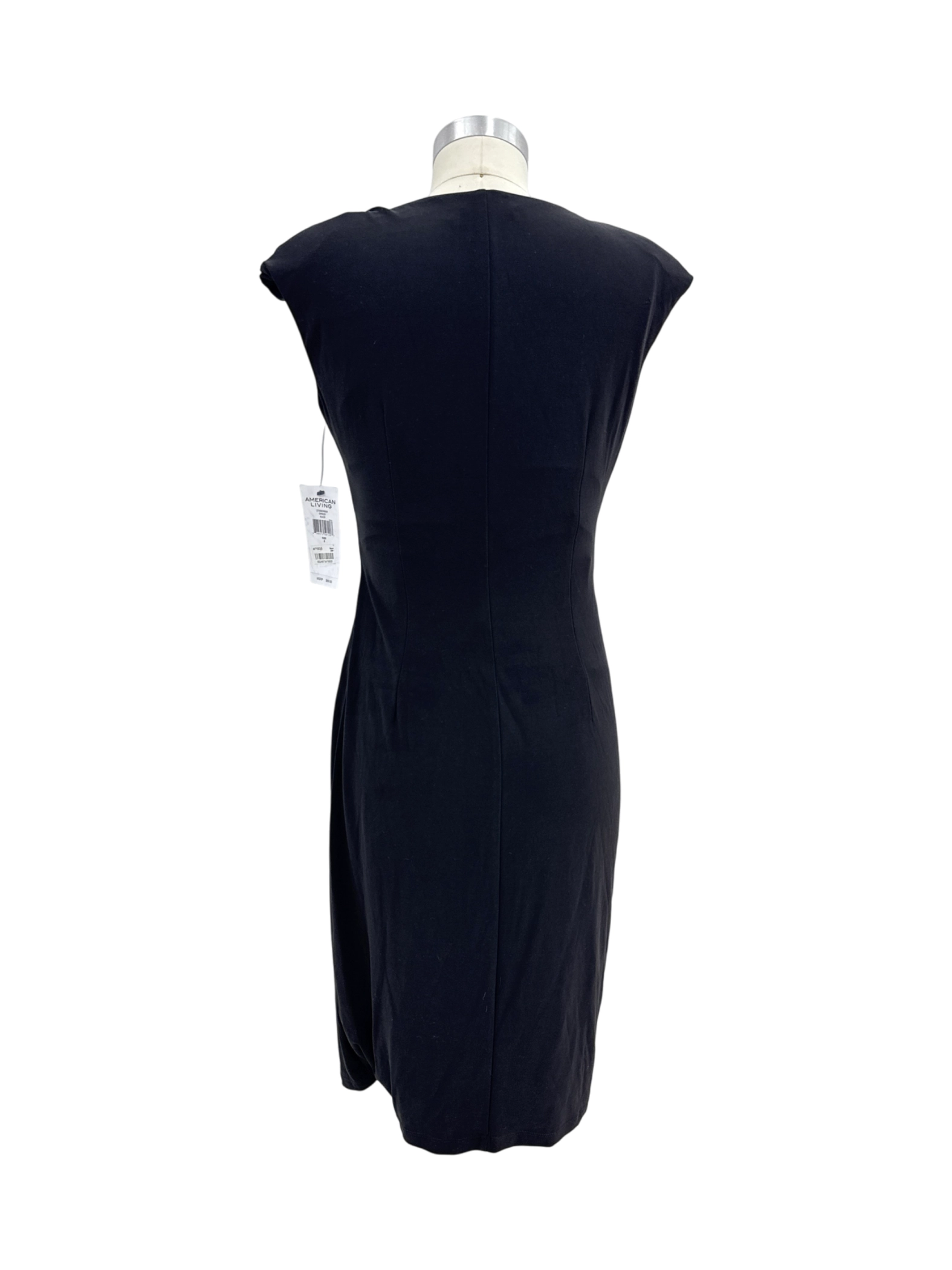 Elevate your evening wardrobe with this pre-owned American Living sheath dress. This sleek black dress features a flattering V-neck, short sleeves, and a figure-hugging sheath silhouette. Crafted from a blend of polyester and spandex, this dress offers both style and comfort. Perfect for cocktail parties or special occasions, this dress is a timeless addition to any closet. This is a perfect piece to add to your collection!