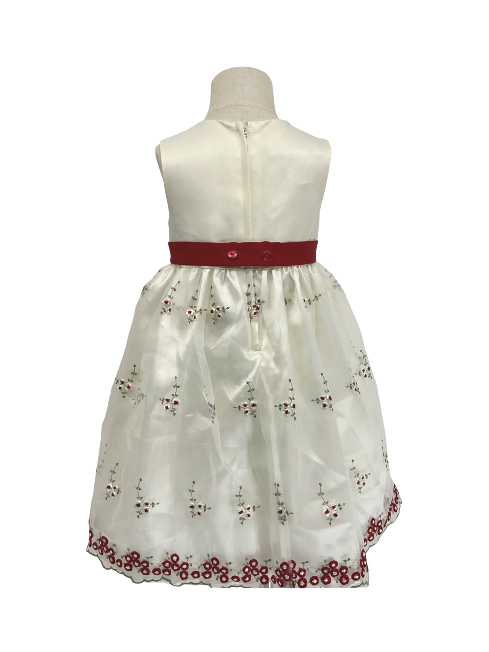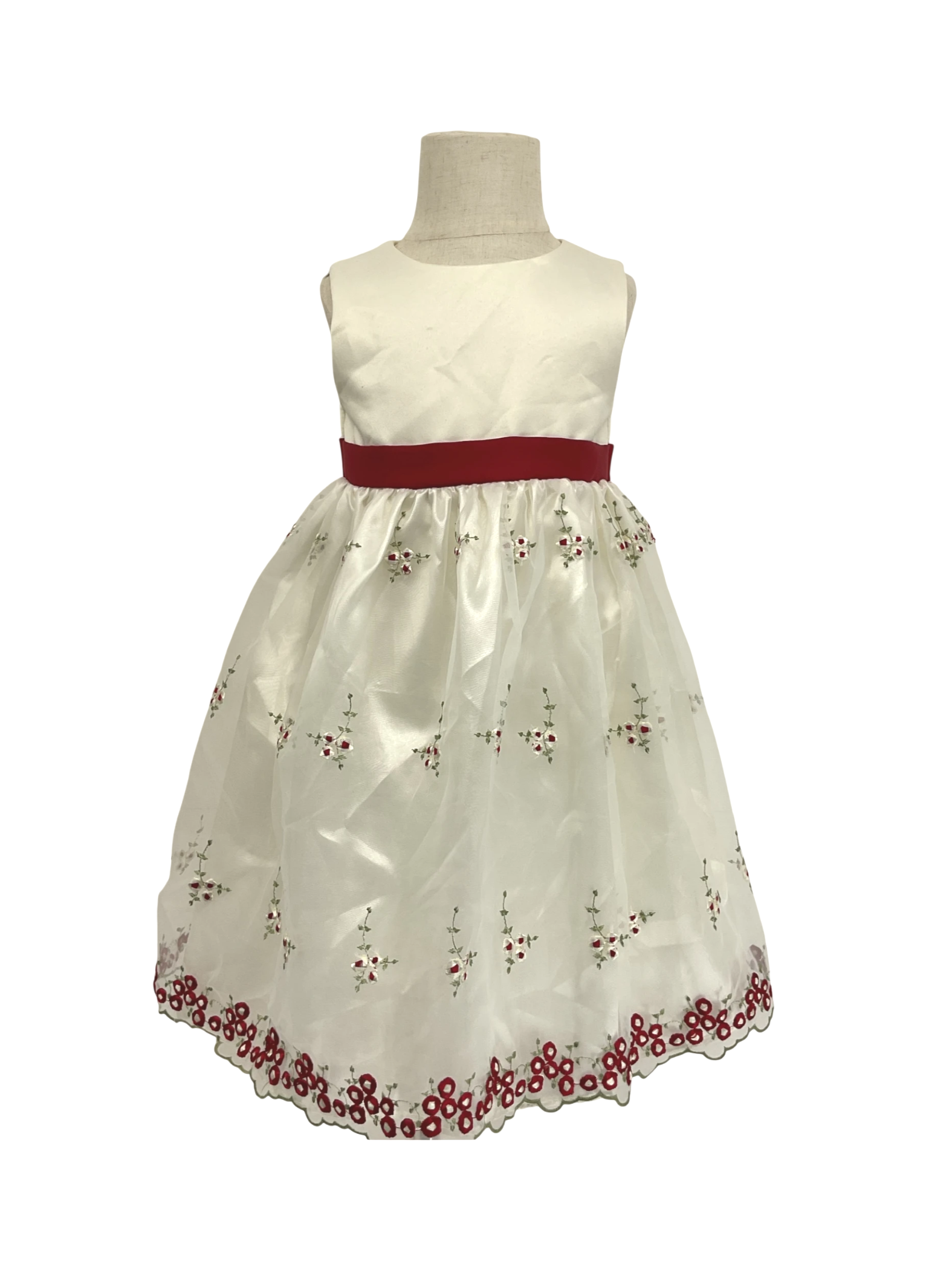 Girls floral Ivory and Red designs for girls size 4T. Made: 100% Polyester.