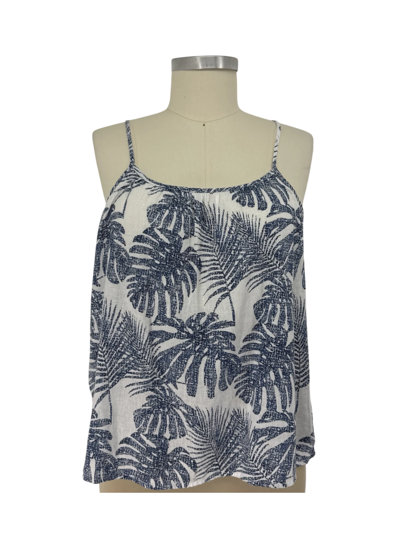 This beautiful used a.n.a tank top is perfect for summer! The white fabric with blue floral pattern will keep you stylish. This tank top is perfect for a casual look, the spaghetti strap neck adds a touch of elegance. Made from lightweight polyester, this top is comfortable for all-day wear.