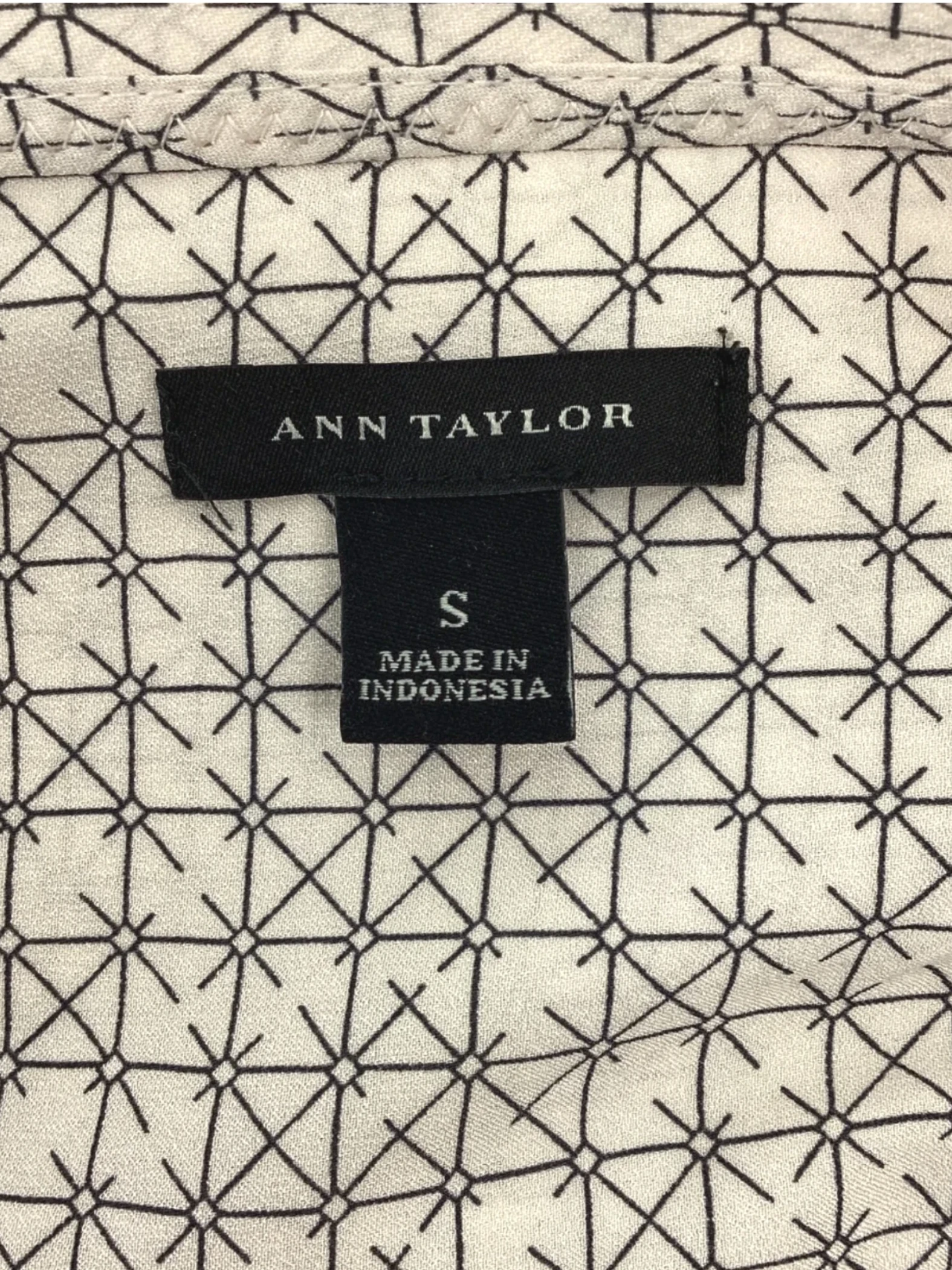 This is a pink long-sleeved blouse top for women from Ann Taylor with a half button-up design.