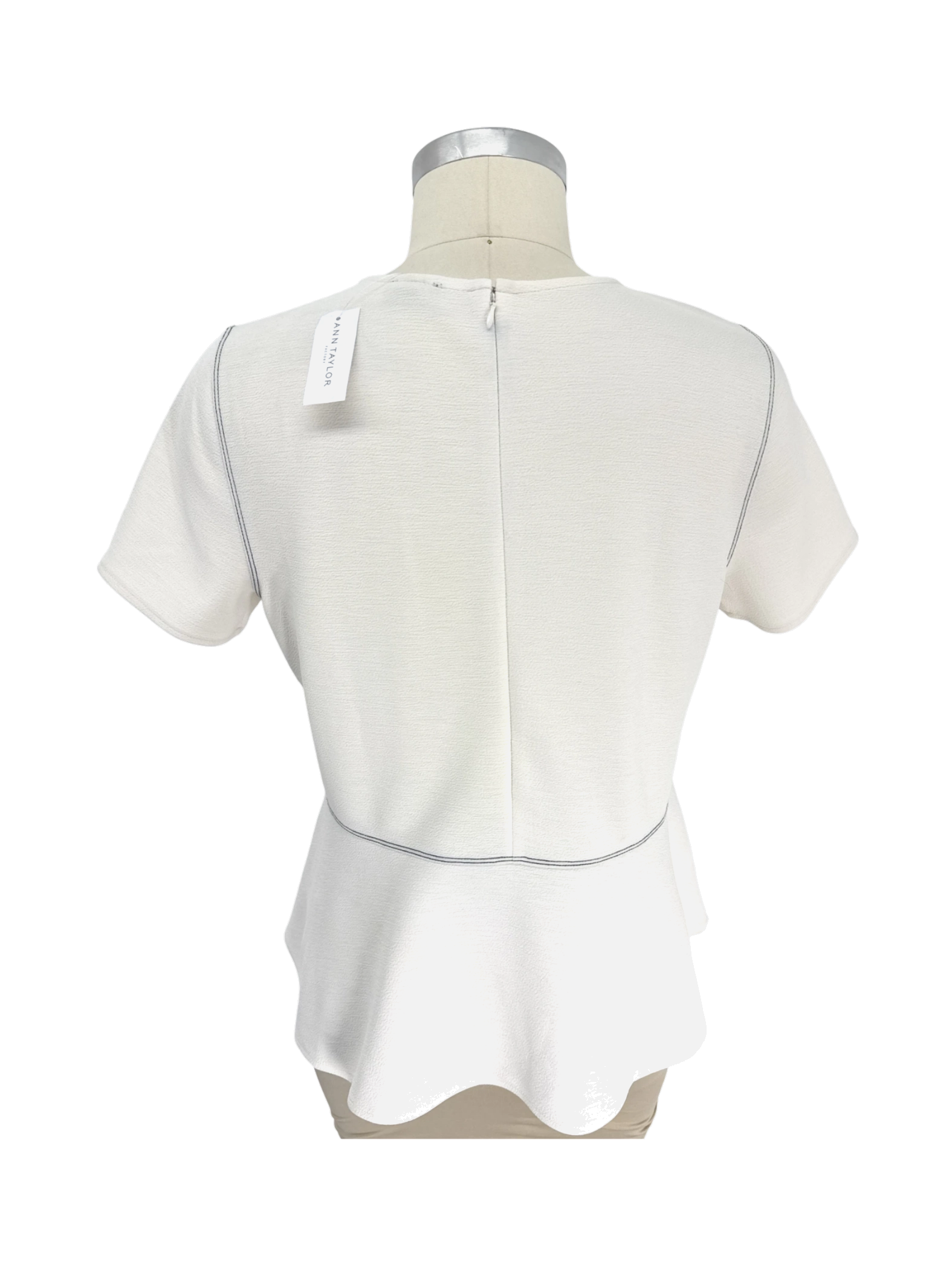 This stylish Ann Taylor blouse is a must-have addition to any wardrobe. Crafted from a comfortable polyester and spandex blend, this top offers a flattering fit with its peplum hem and classic round neck. Perfect for both casual and professional settings, its neutral color and subtle design make it a versatile piece. Pre-owned but in excellent condition, this blouse is a great value for those looking to add a touch of sophistication to their outfits.
