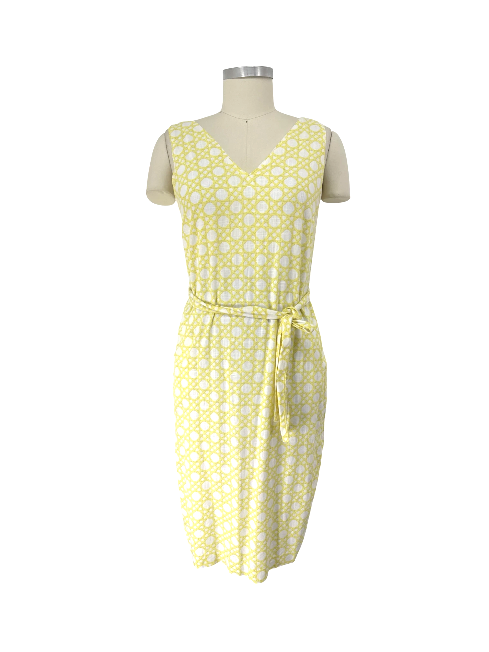 Elevate your summer wardrobe with this pre-owned Ann Taylor A-line dress. Featuring a vibrant geometric pattern in yellow and white, this sleeveless dress is perfect for warm weather. Made from a blend of linen and viscose, it offers both comfort and style. The dress has a V-neck and a flattering silhouette. It is a stylish choice for any casual occasion.