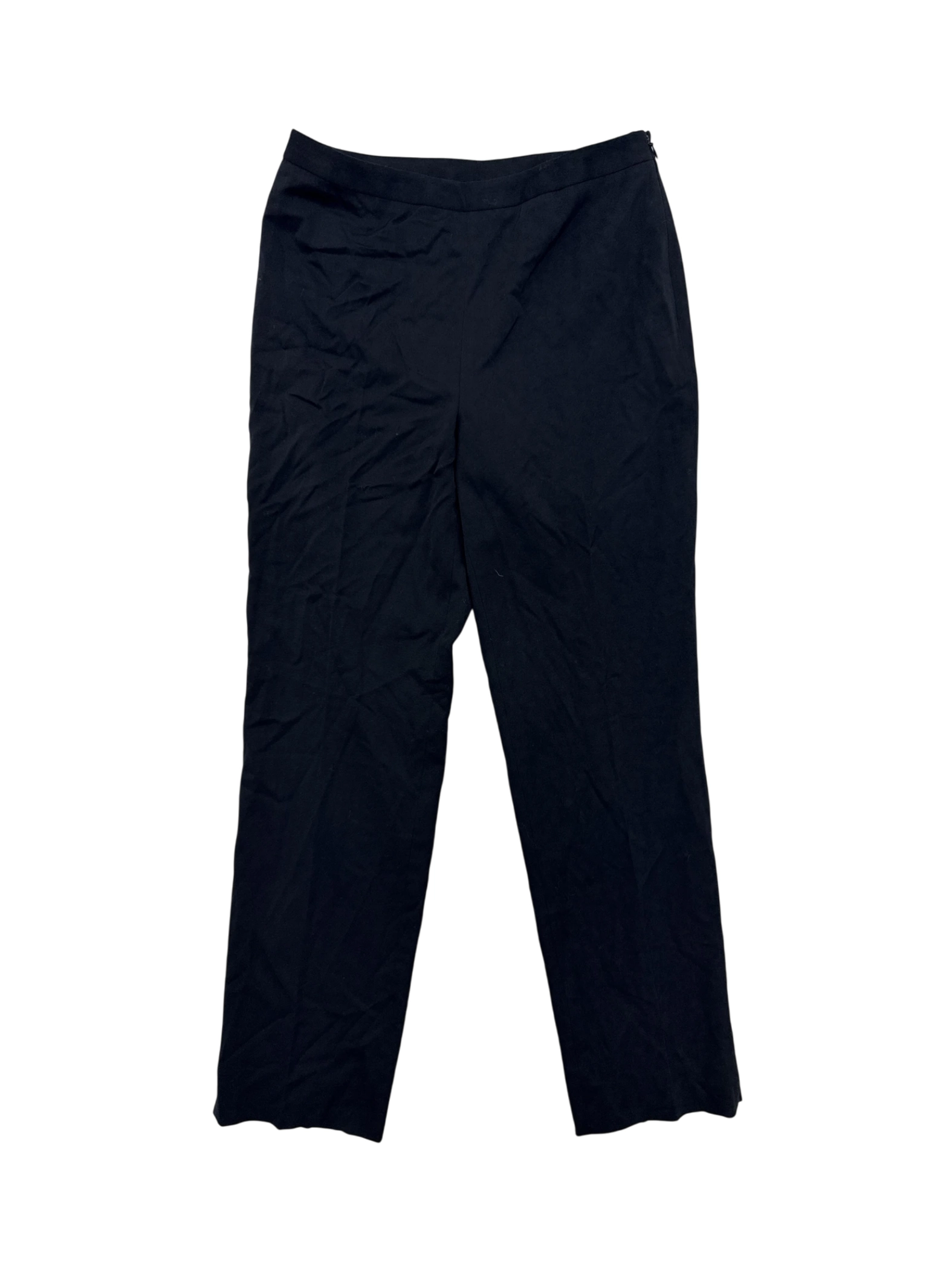 Elevate your wardrobe with these pre-owned ANNE KLEIN NEW YORK black dress pants. Crafted from a premium wool blend with a touch of spandex for stretch and comfort, these pants feature a classic straight leg cut. Perfect for professional settings or smart casual outings, these dress pants offer timeless style and versatility. The black color makes it easy to pair with various tops. Made in Thailand, these pants are designed to provide a flattering fit and long-lasting wear. Shop now and add a sophisticated touch to your collection!
