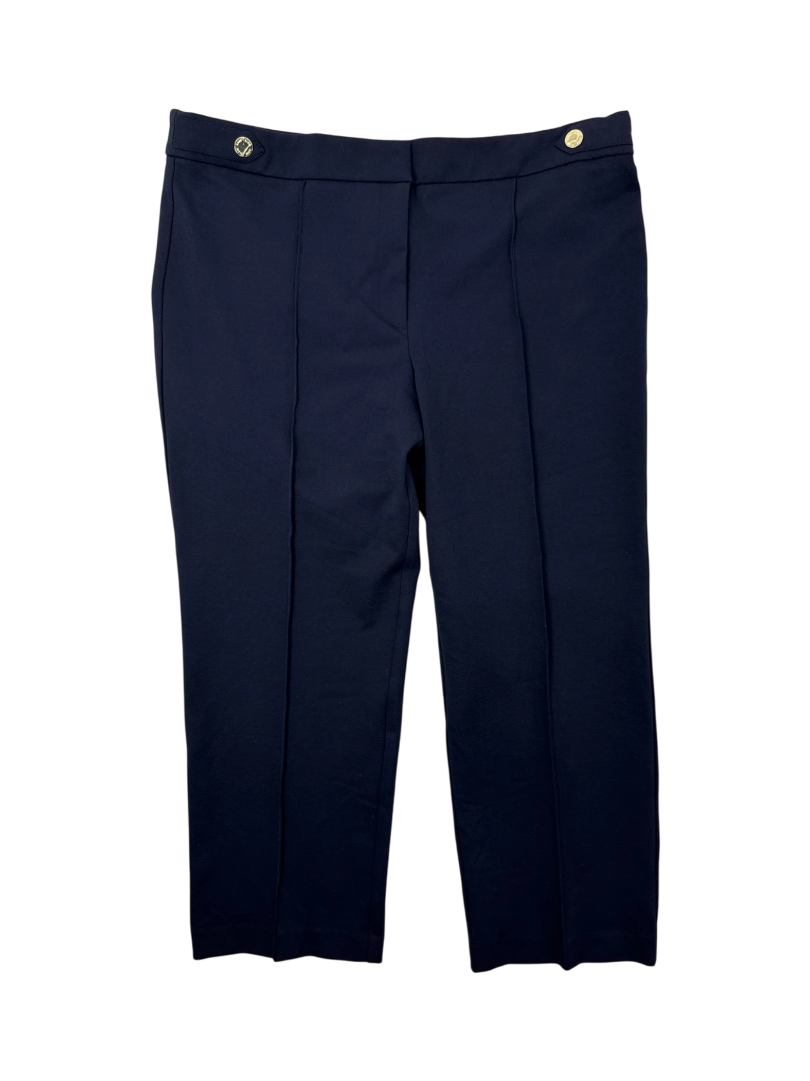 These pre-owned ANNE KLEIN dress pants are a stylish addition to any wardrobe. Crafted in a sleek navy blue, they feature a comfortable straight leg fit and a classic design. Made from a blend of polyester and spandex, these pants offer both durability and flexibility. Perfect for the fall and winter seasons, these dress pants are versatile enough for both work and casual wear. A timeless piece that combines elegance and comfort.