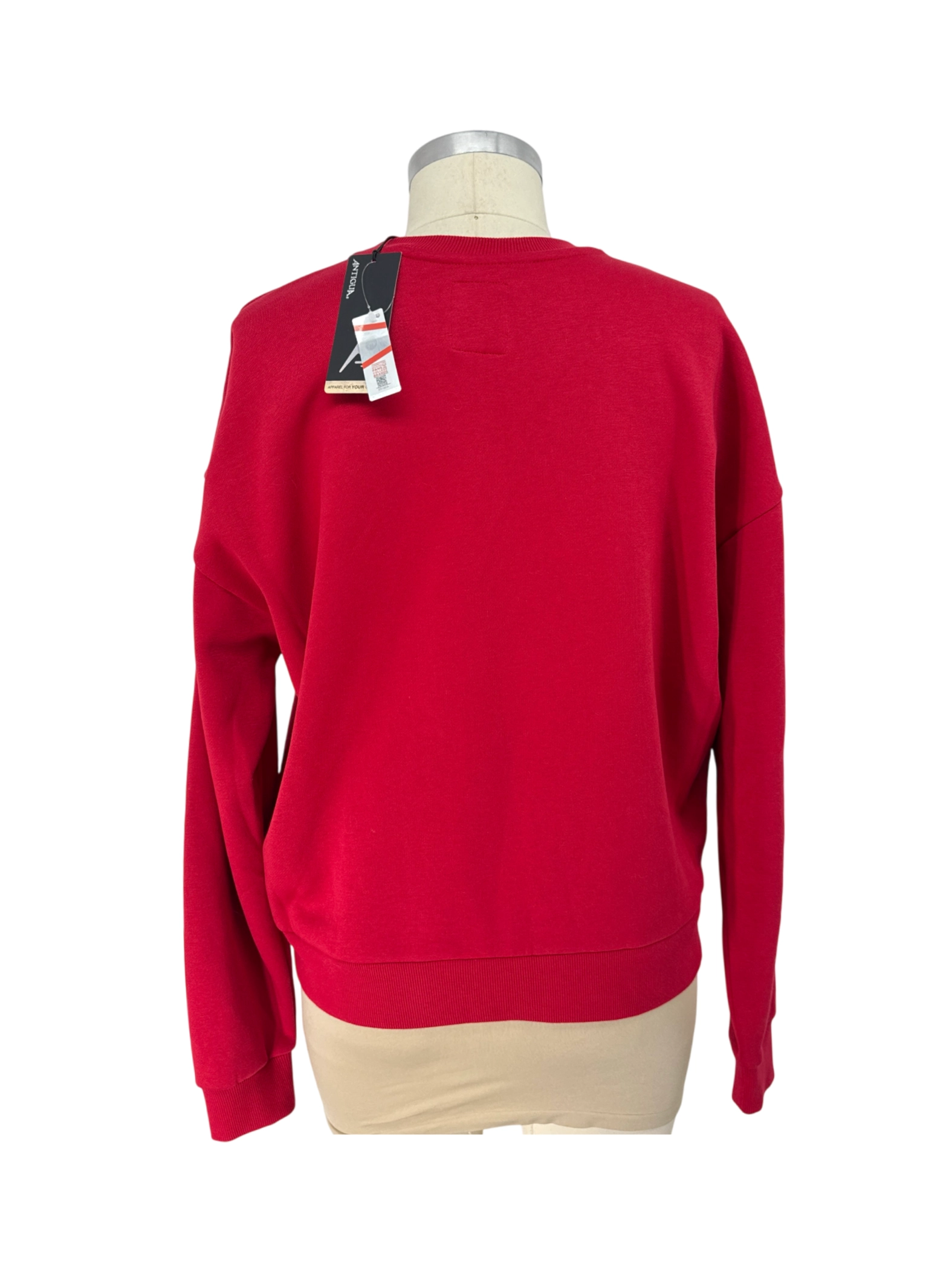 This pre-owned Antigua women's sweater is a cozy and stylish addition to any wardrobe. Featuring a classic crew neck and long sleeves, this sweater offers both comfort and versatility. Made from a soft cotton blend, it's perfect for layering. The red color adds a pop of brightness, making it ideal for casual outings or relaxing at home. A great find for anyone looking for affordable, quality casual wear. Perfect for a fall or winter look.