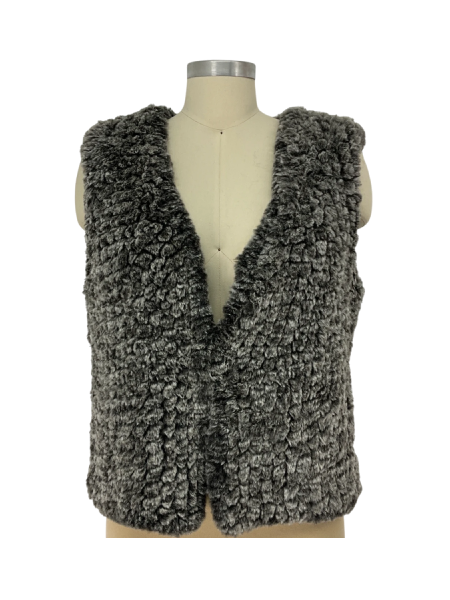 Aqua Gray and White Faux Fur Womens V-Neck Vest Size M.
