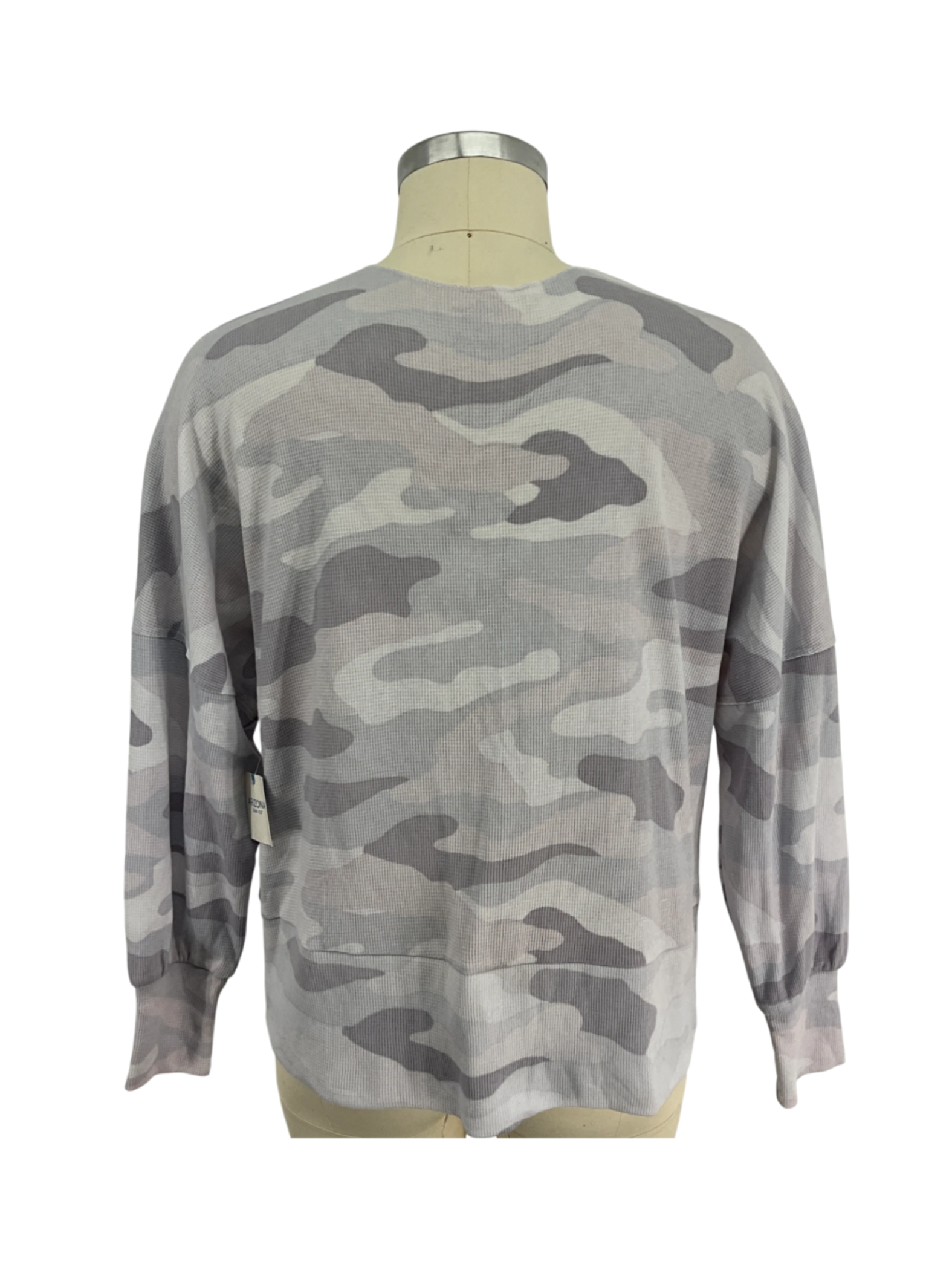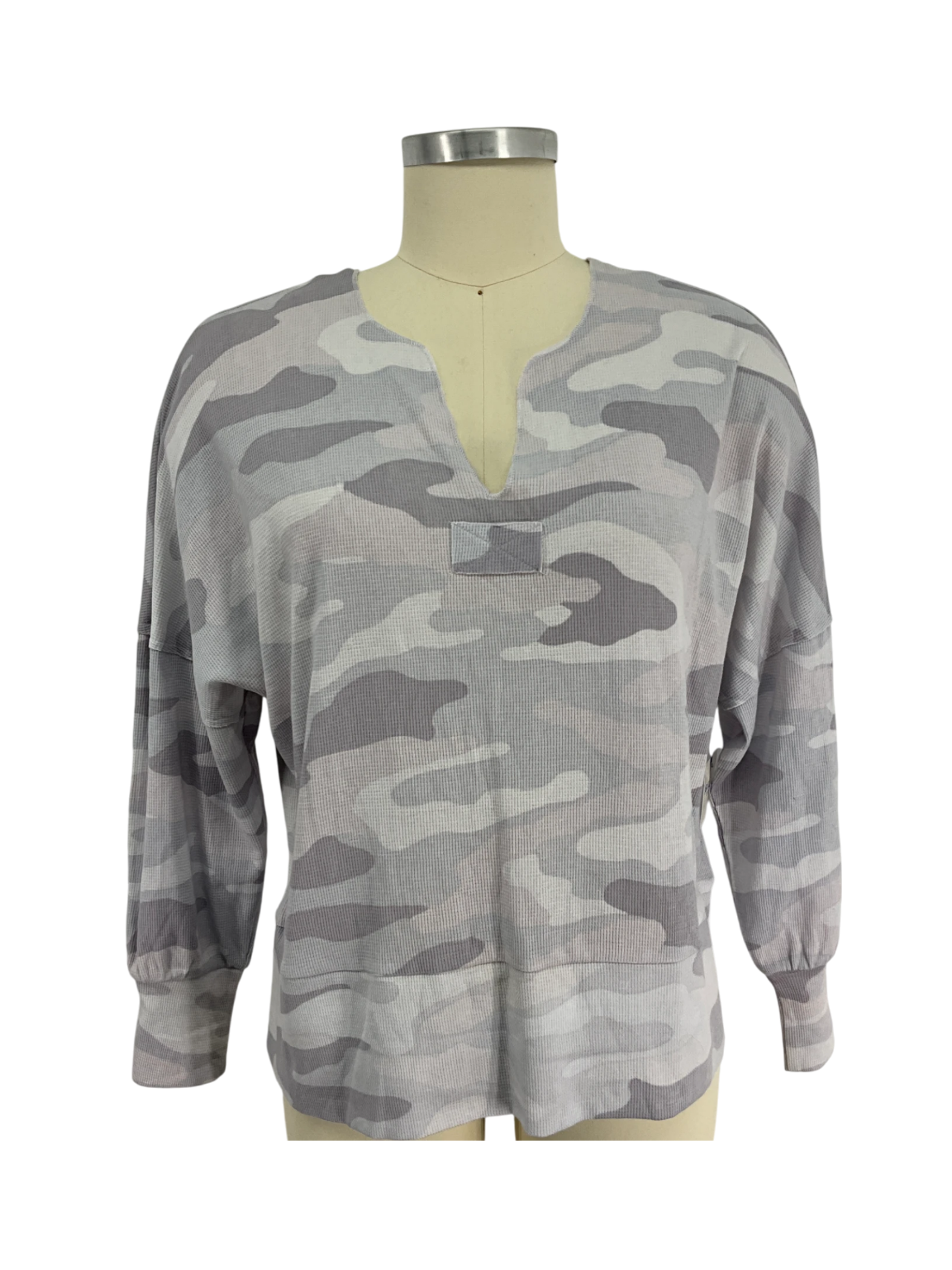 The women's XL gray camo top from Arizona features a waffle texture, V-neck, and long sleeves.