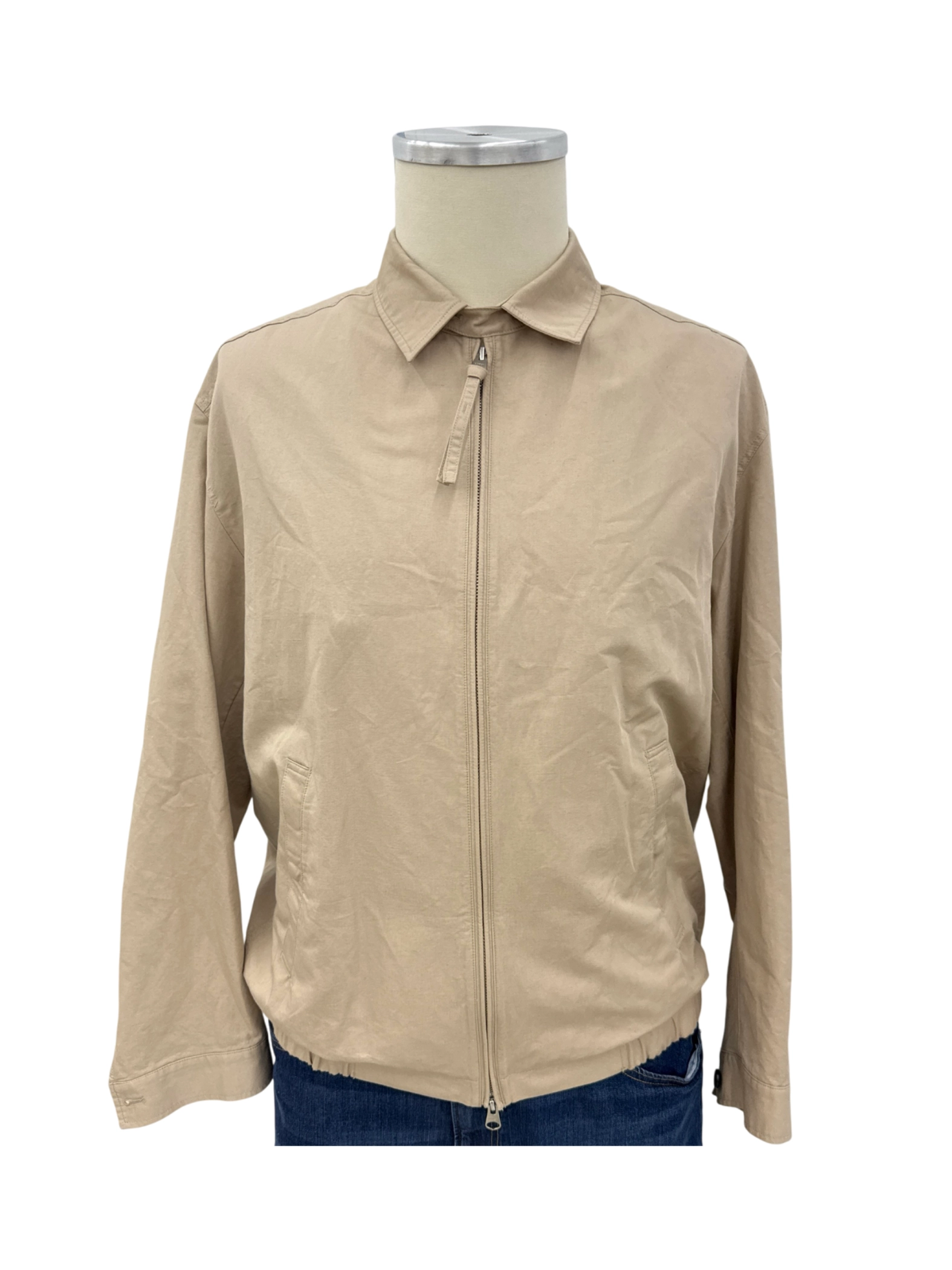 This pre-owned ARKET jacket is a stylish and versatile outerwear piece for men. Crafted from a blend of cotton and linen, it offers a comfortable fit. The neutral beige color makes it easy to pair with various outfits. Features a classic jacket style with a zip closure. Perfect for adding a touch of sophistication to your casual wardrobe. The jacket is in good condition, showing minimal signs of wear.