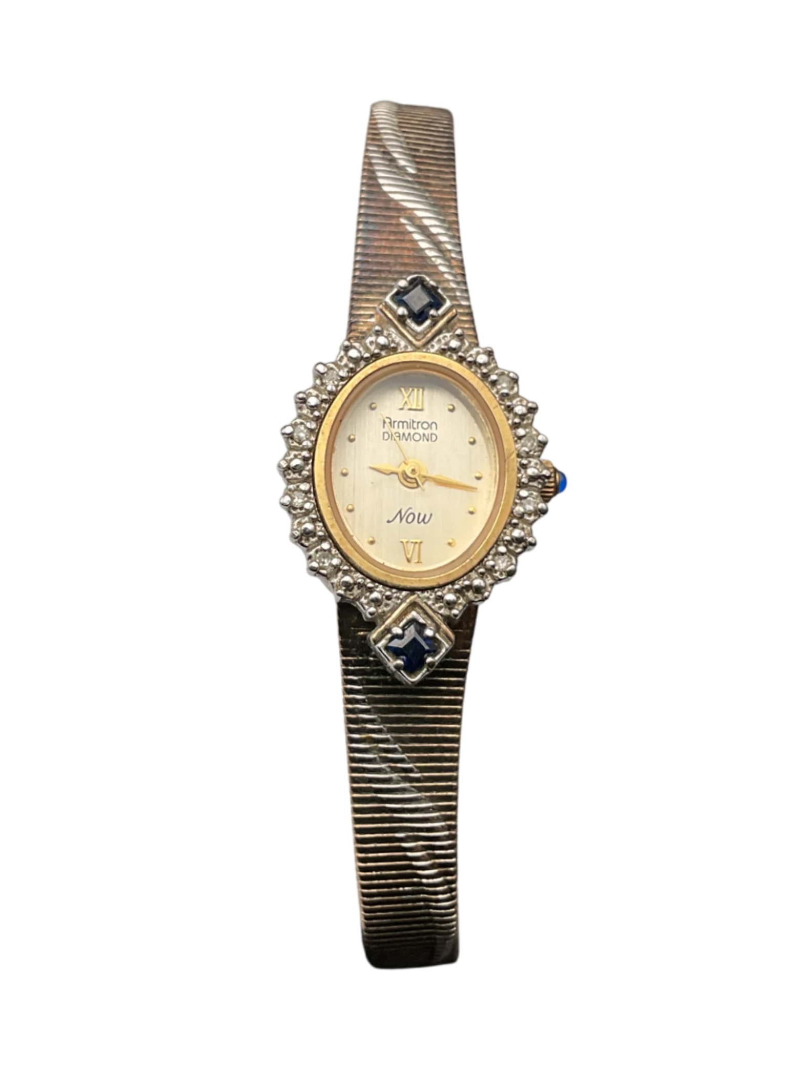 A vintage watch for women in silver and gold colors.