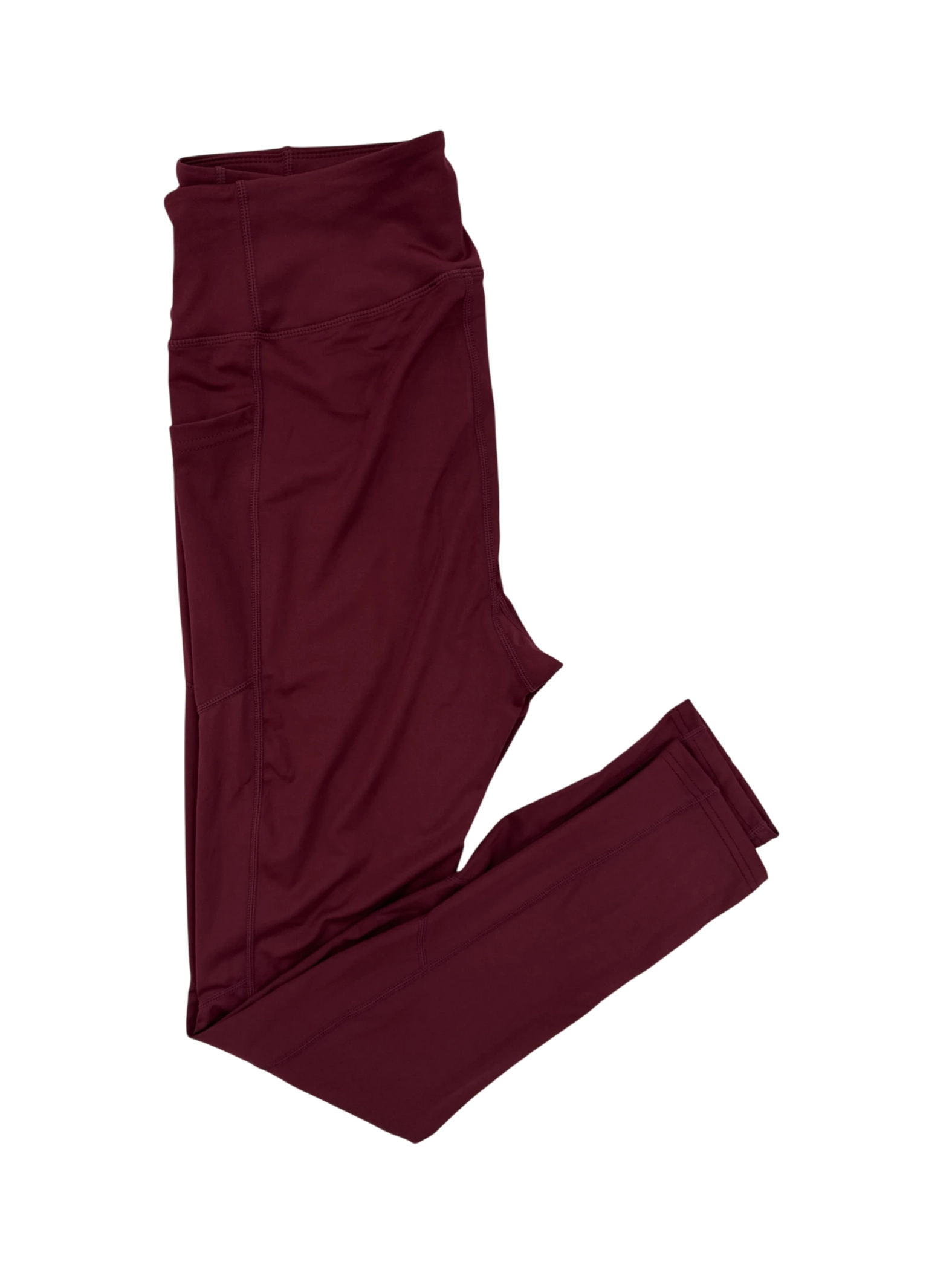 Elevate your activewear collection with these pre-owned ASHLEY SPOR leggings. Crafted from a blend of polyester and spandex, these leggings offer a comfortable and flexible fit. The burgundy color and sleek design make them perfect for workouts or casual wear. Featuring a size range of 10/12, these leggings are a stylish and affordable addition to your wardrobe.